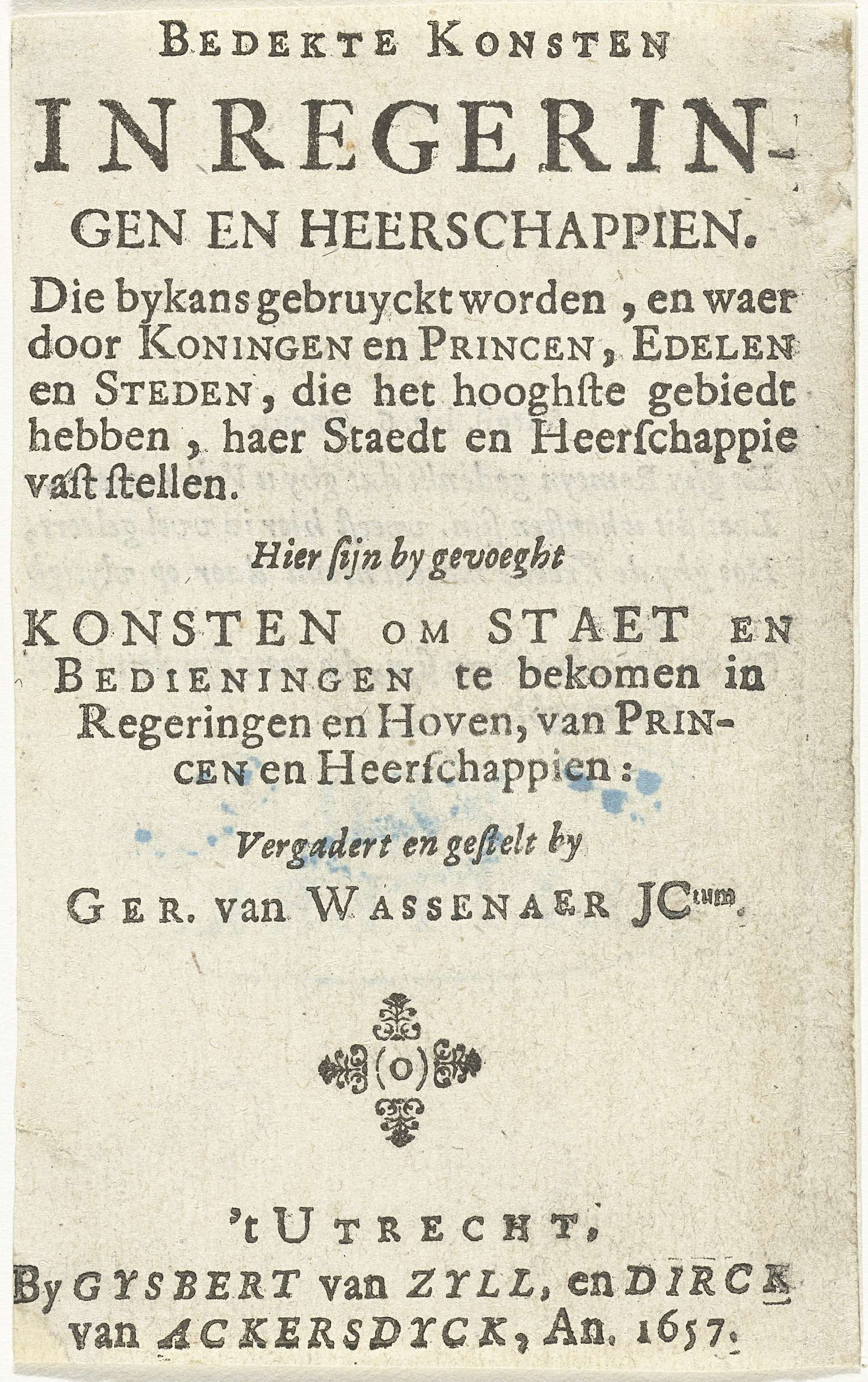 Titelpagina voor: Bedekte konsten in regeringen en h...