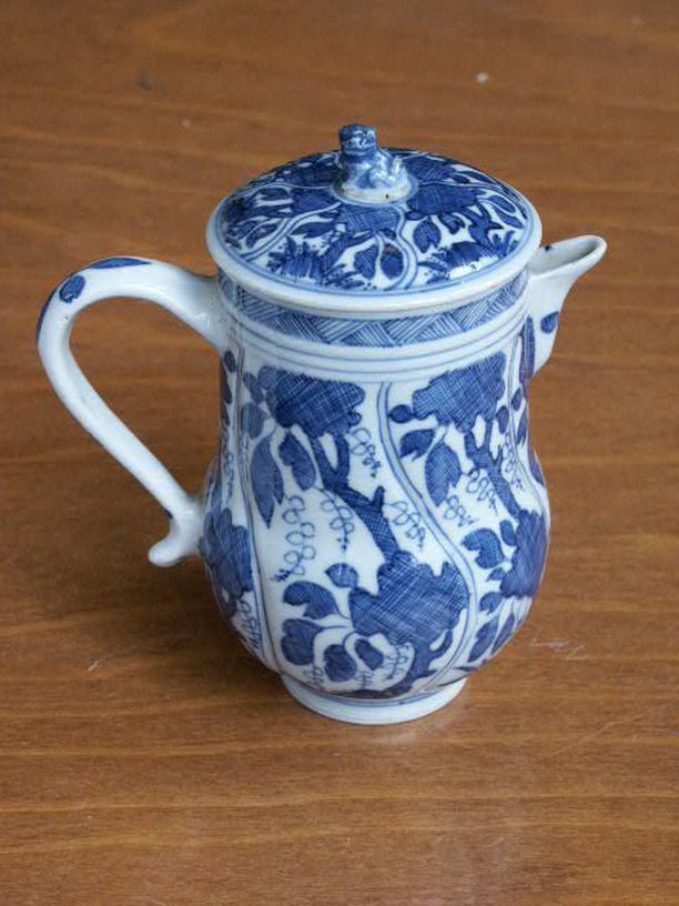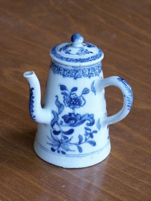 Koffiepot met decor van bloemtak en kostbaarheden