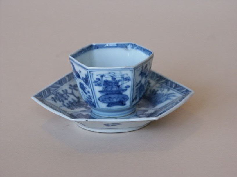6 Koppen en 3 schotels met decor van bloeiende planten