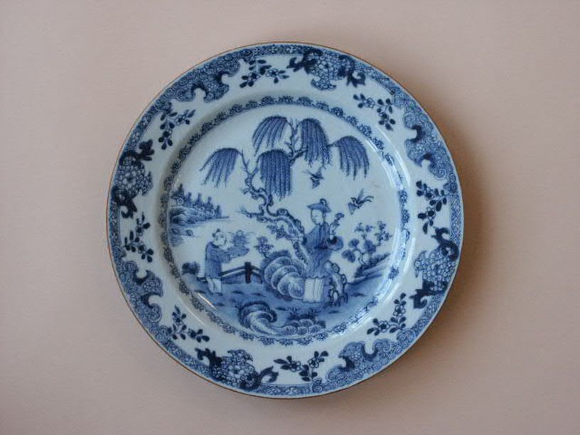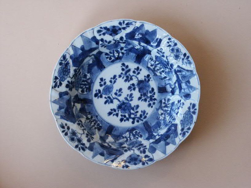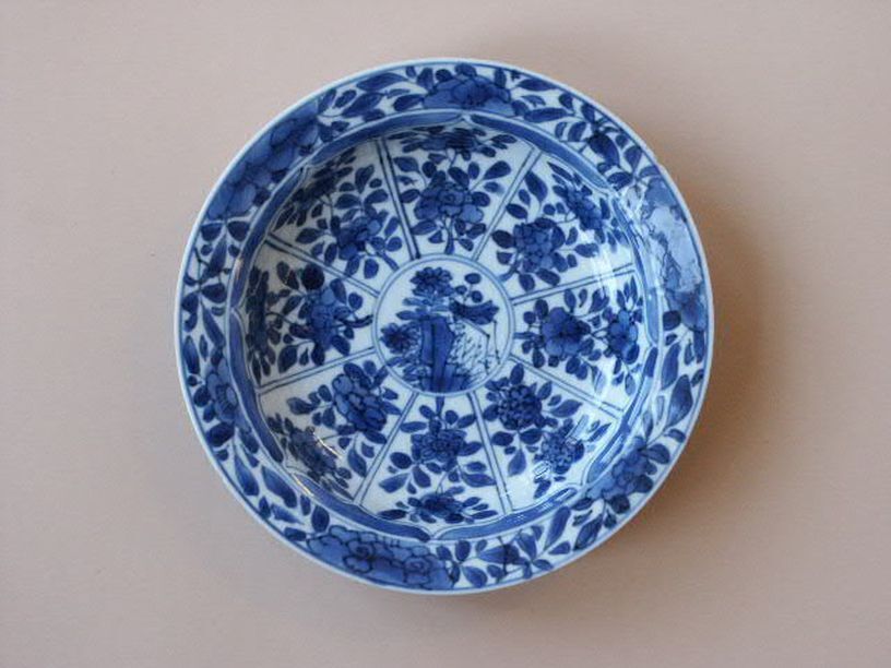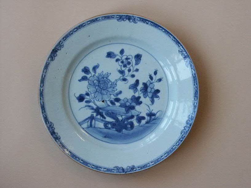 Serie van 18 borden met decor van 8 vlakken met bloe...