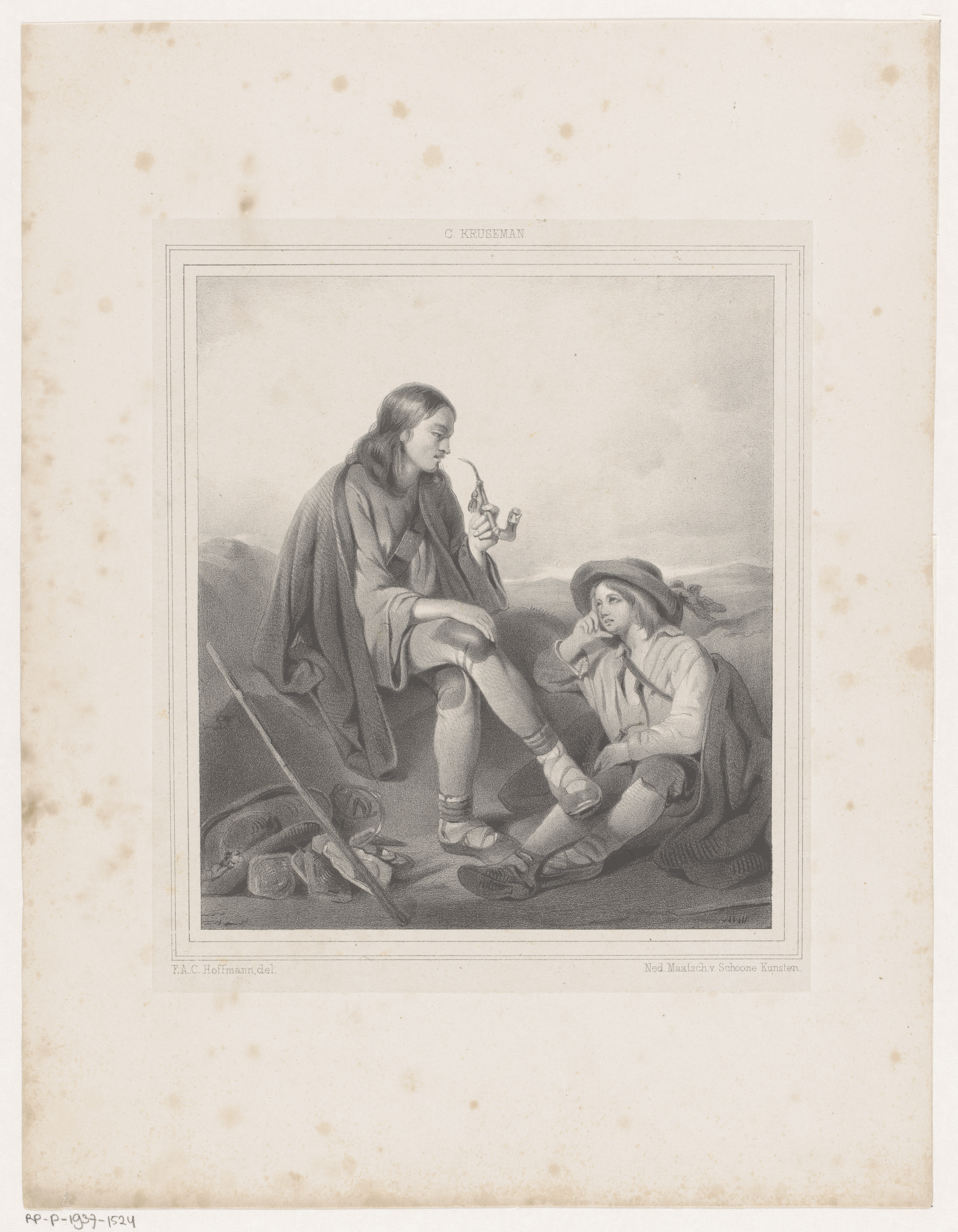 Heuvelachtig landschap met rustende figuren