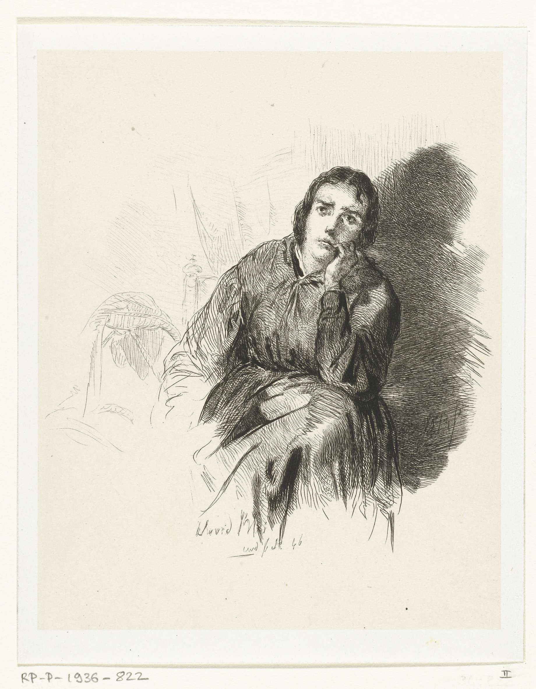 Studie van een peinzende vrouw