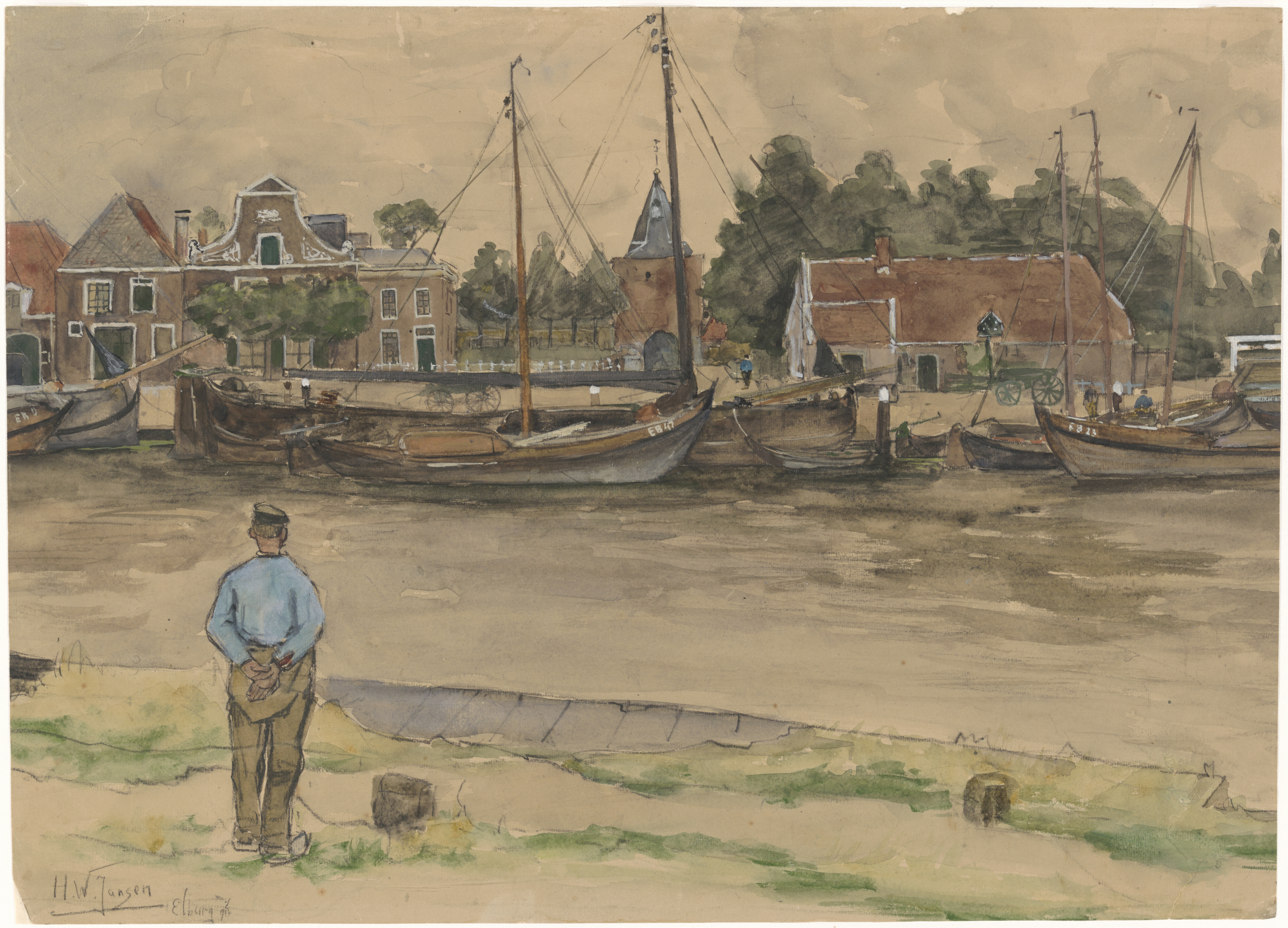 Portret van een Volendammer visser ,,Als het angelus...