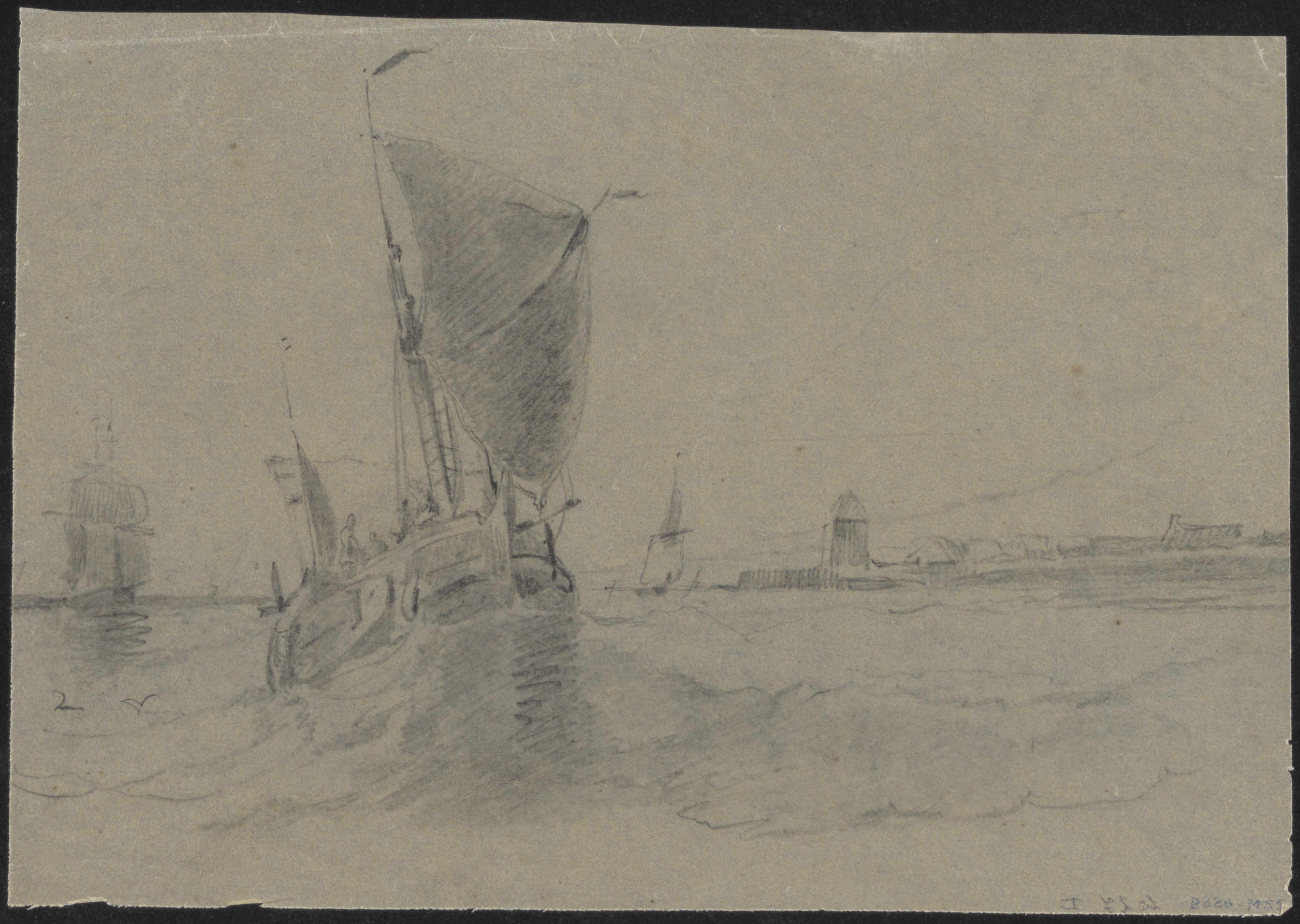 Zeilschepen voor de kust.