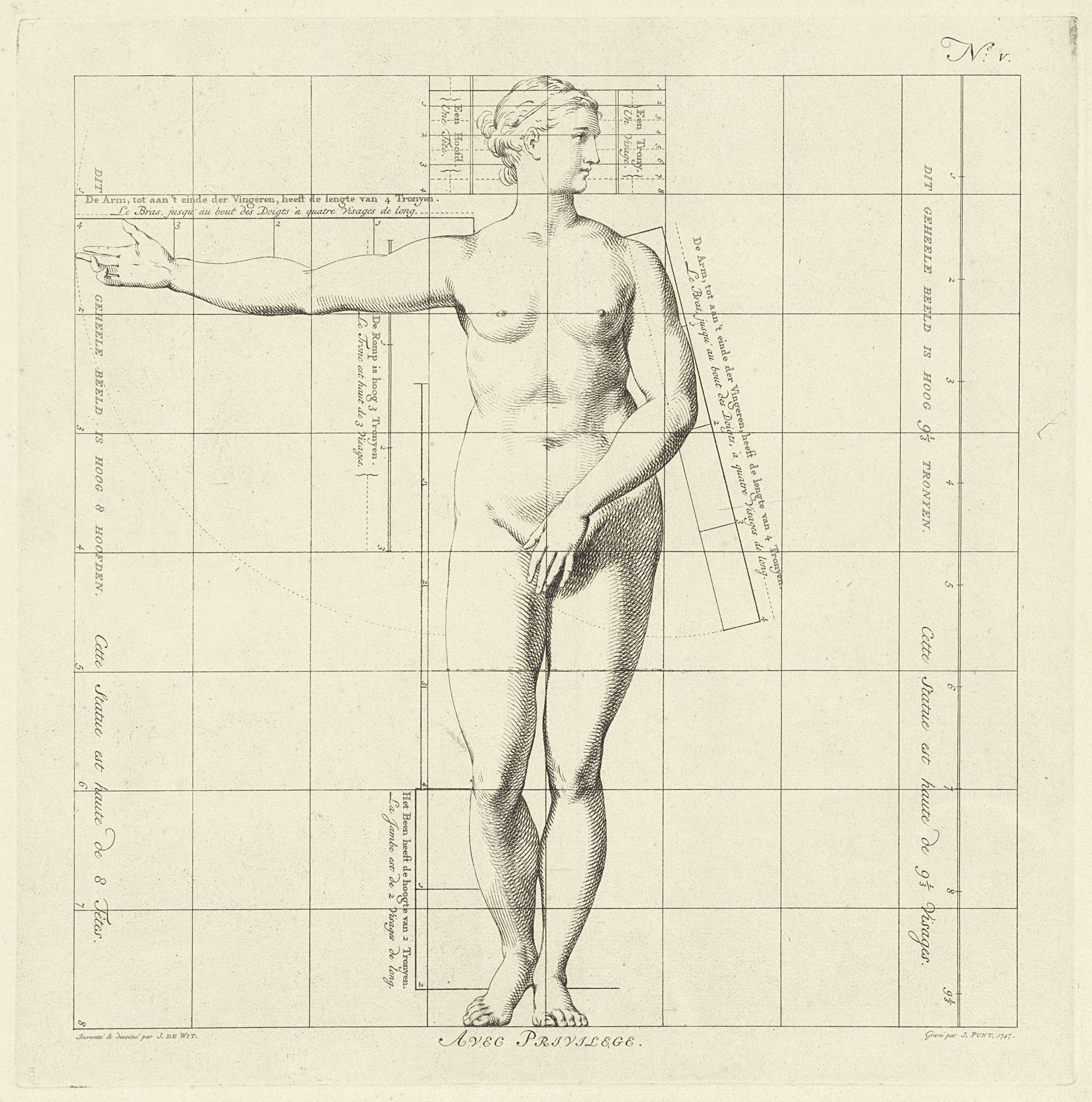 Proportiestudie van het lichaam van Apollo Belvedere