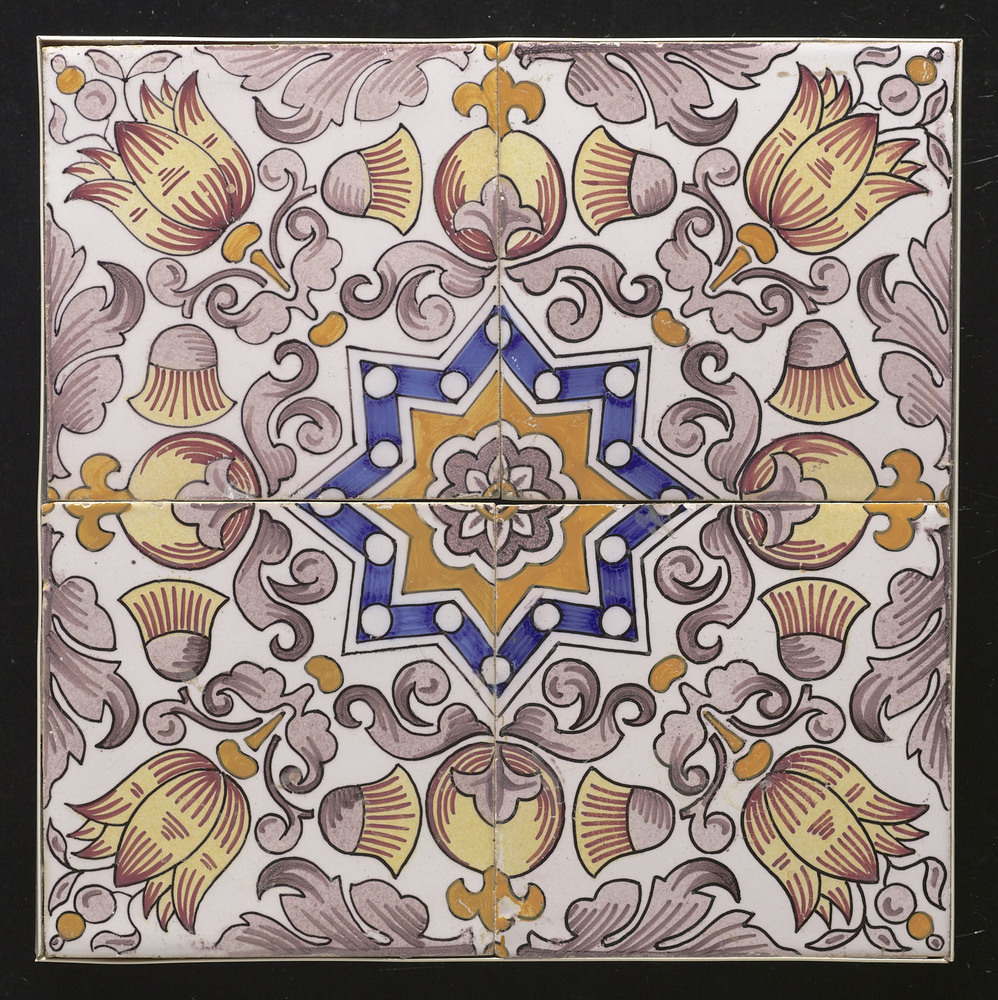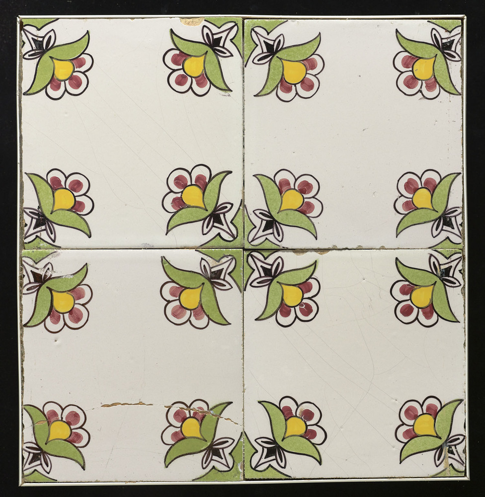 Tegelveld bestaande uit vier tegels van keramiek met...