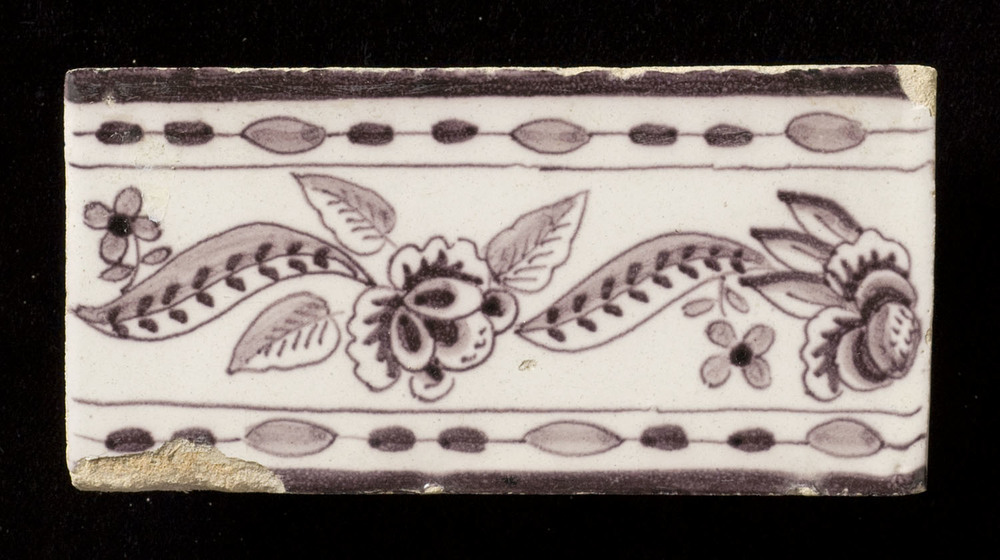 Randtegel in tinglazuur, voorstellende rozelintlijst...