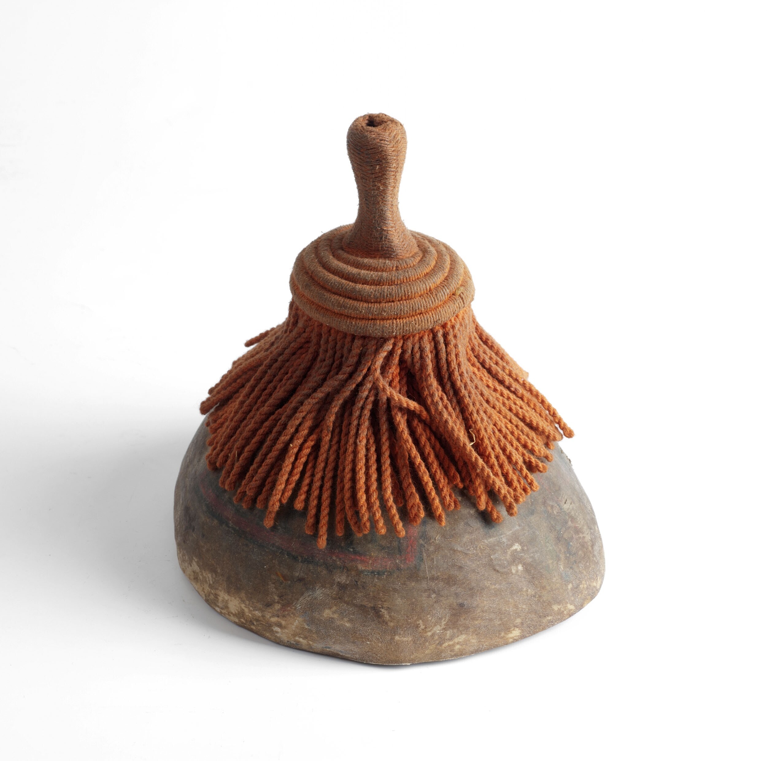 Halve bol van dierenhuid, onderdeel van een spel