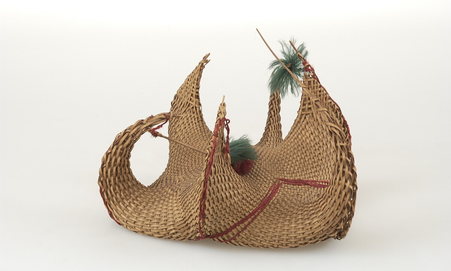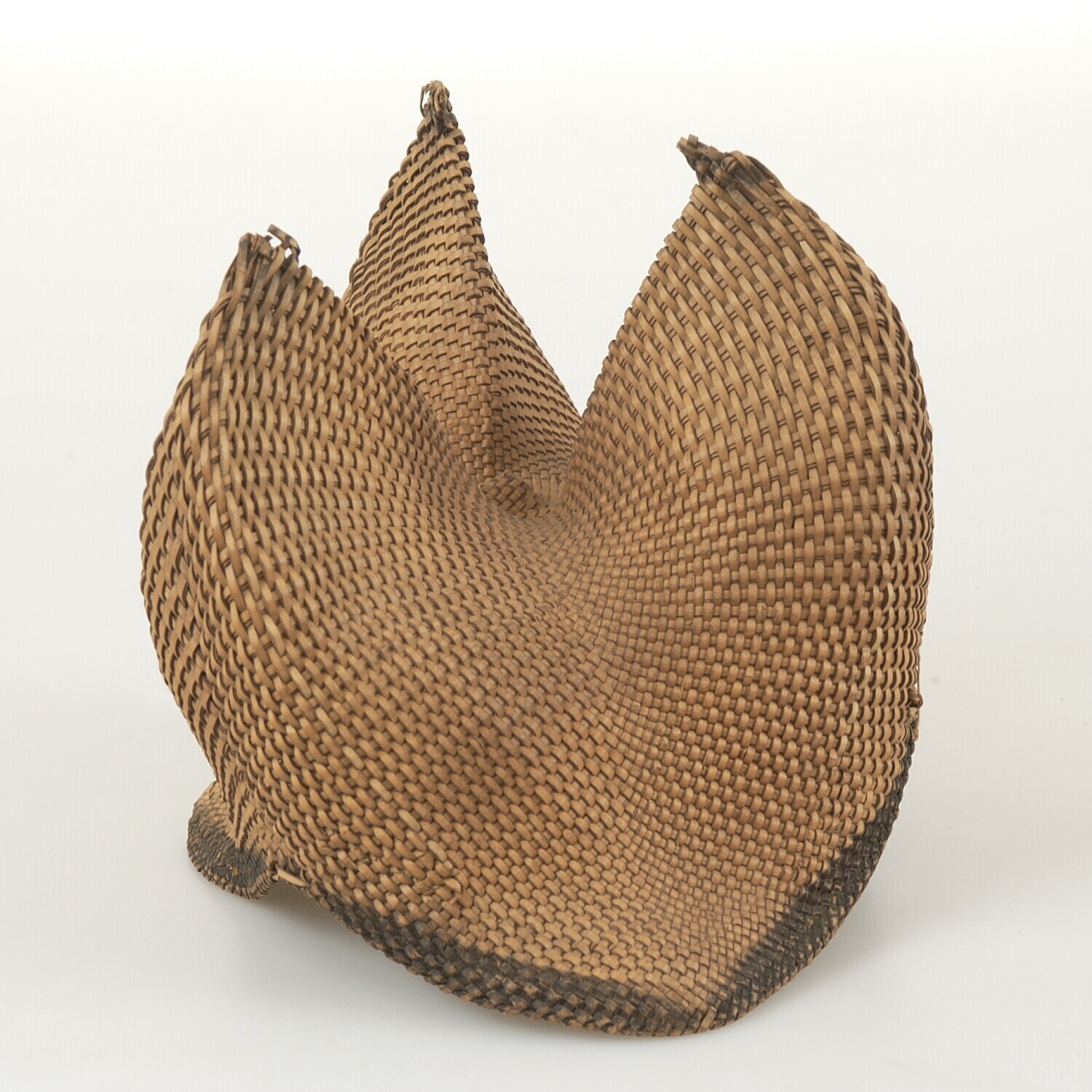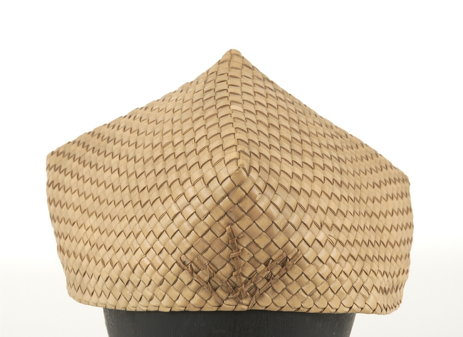 Hoed van gevlochten lontarblad met drie uitsteeksels