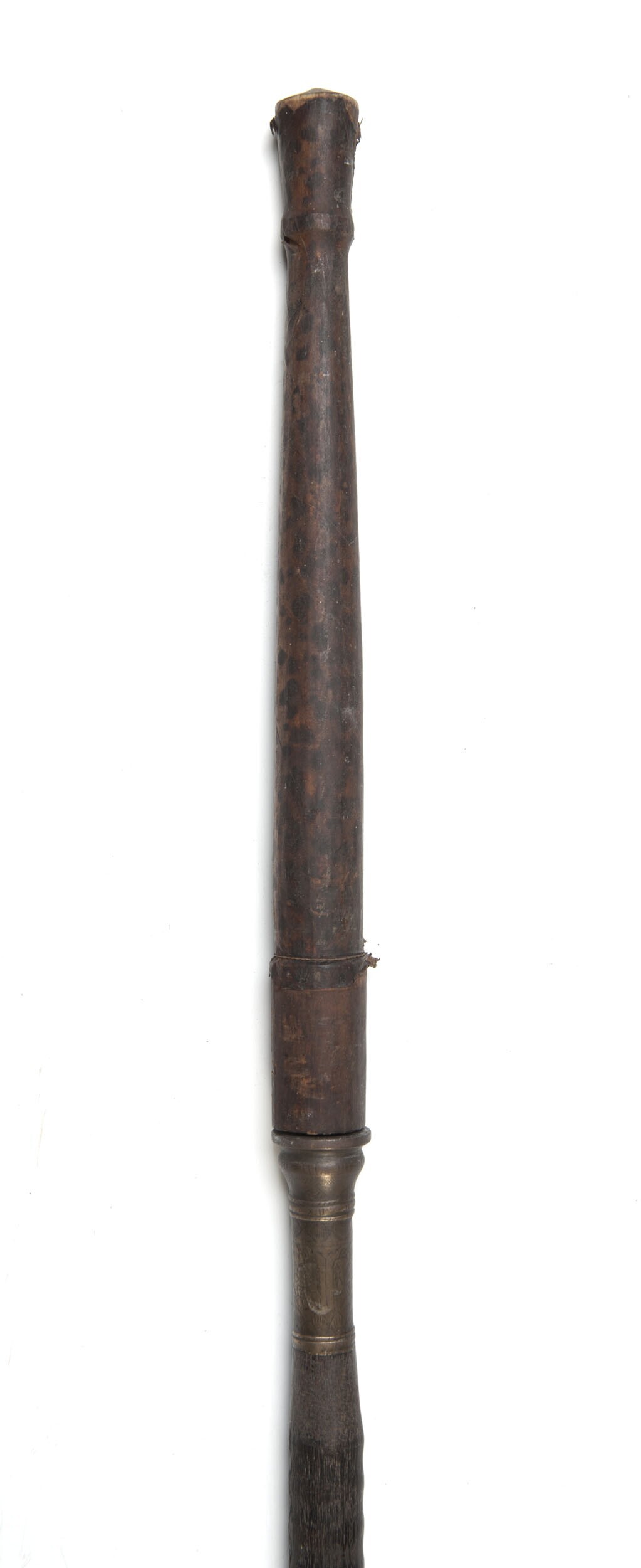 Houten lans voorzien van een rietbladvormige ijzeren...