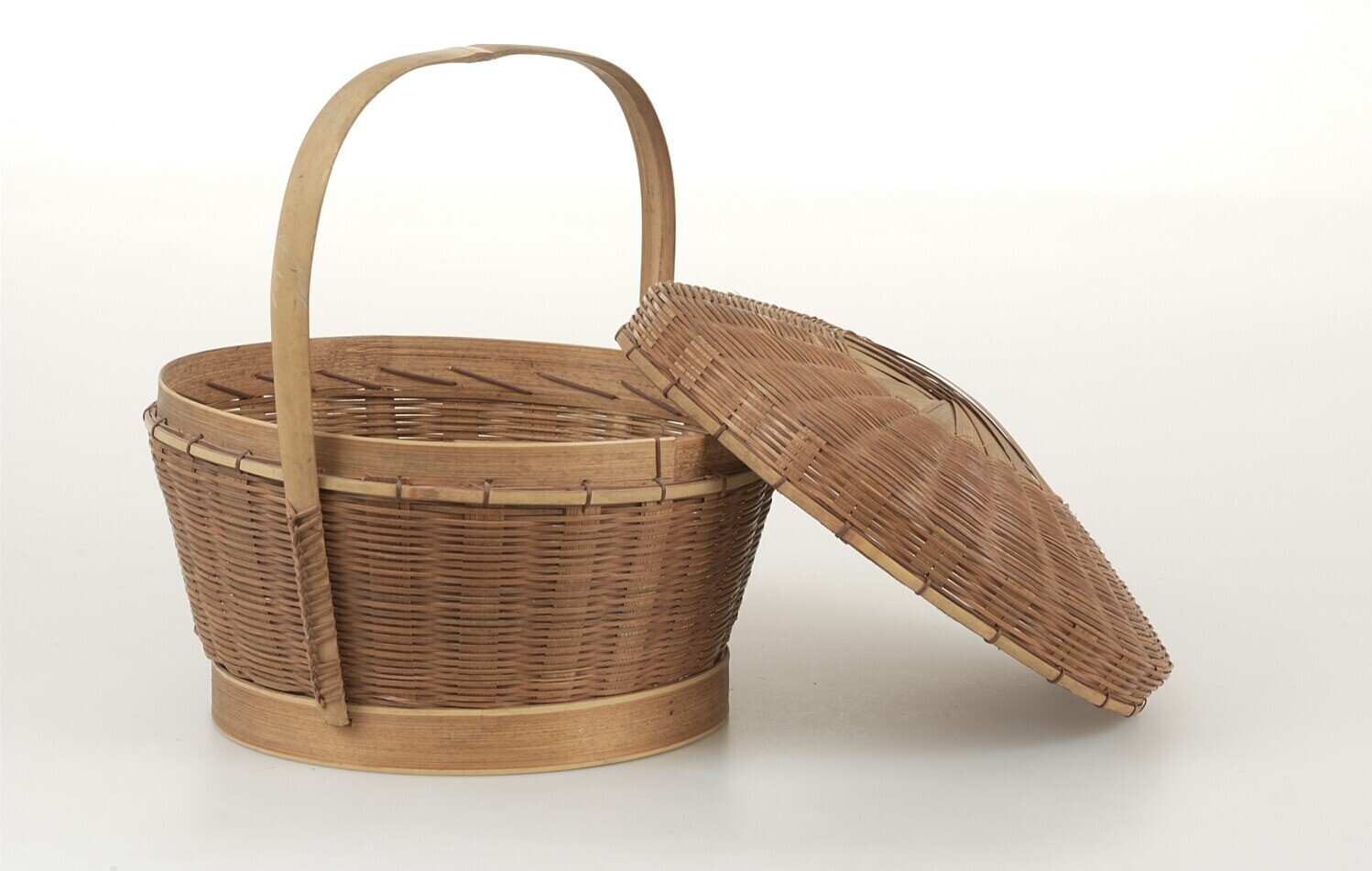 Gevlochten hengselmand met deksel van rotan en bamboe