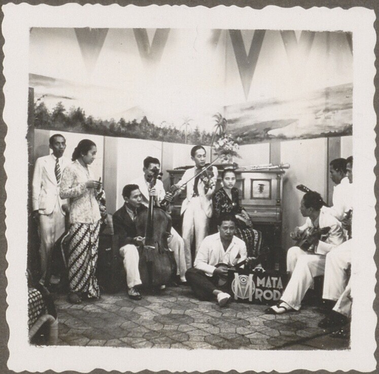 Orkest en zangeres op filmset