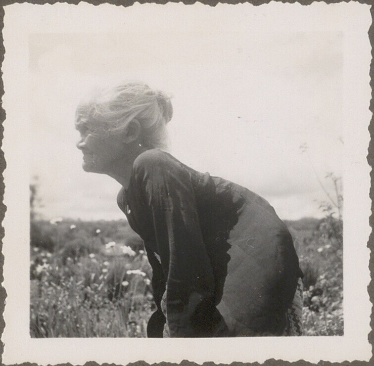 Oude vrouw in de tuin