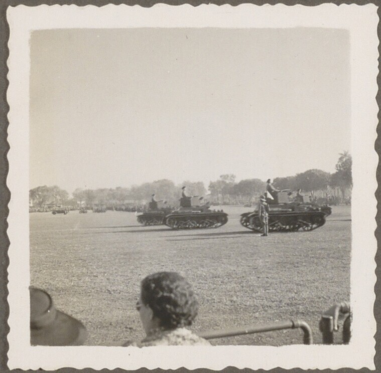 Tanks tijdens militaire parade te Batavia