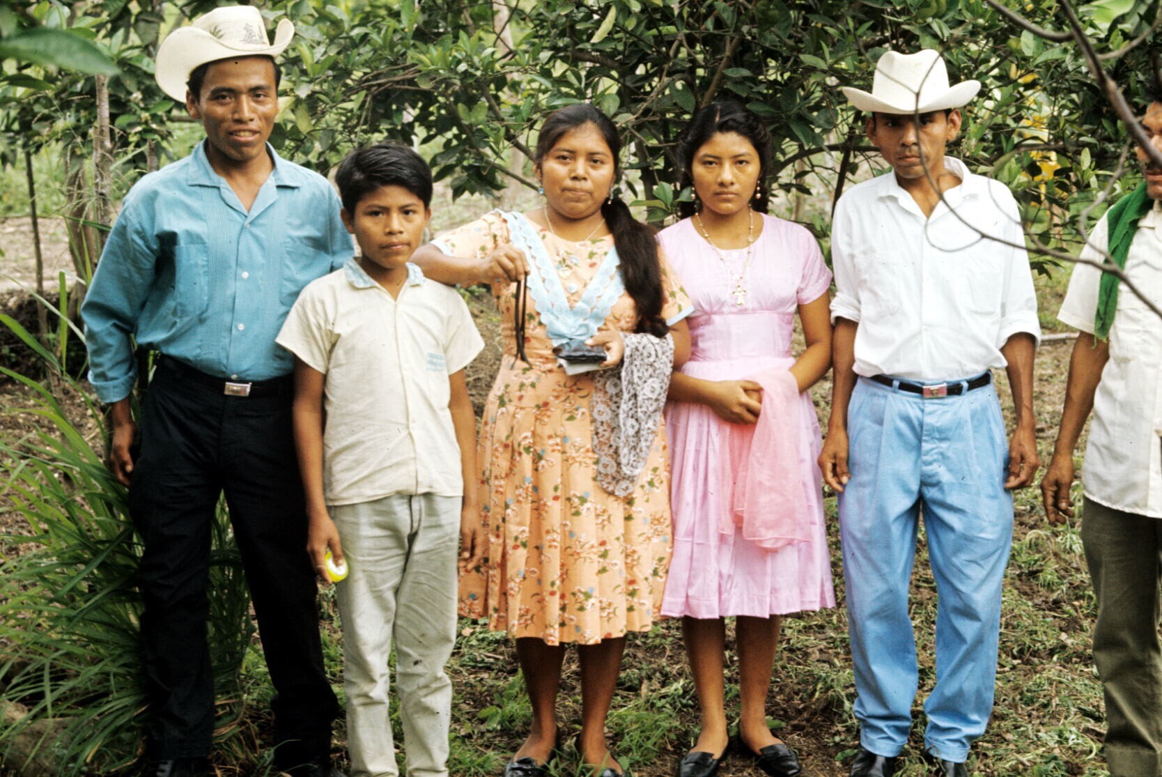 mannen bij hibiscussstruiken