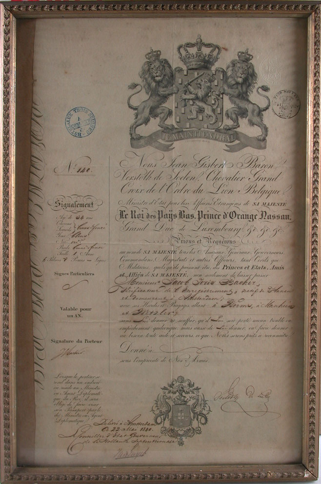 Paspoort van Jacob Joris Backer (1840)