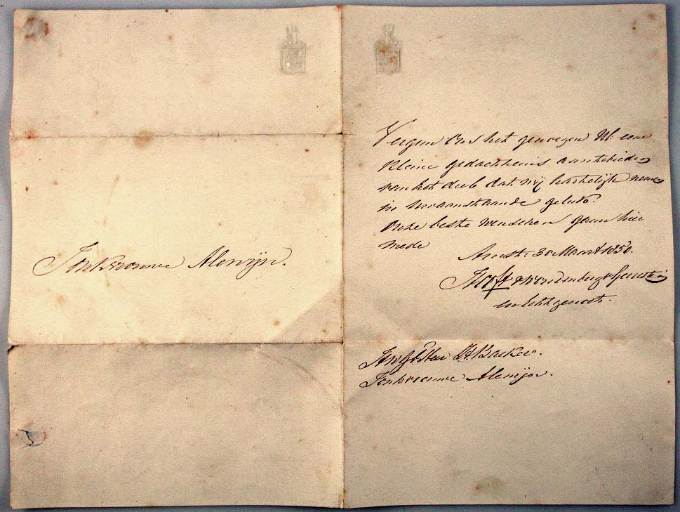Verlovingskaartje Jacob Joris Backer van Leuven (180...