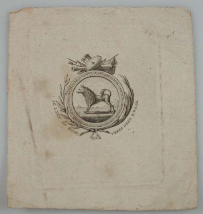 Wapen met keeshond en onderschrift IK LEEF OF HOOP -...
