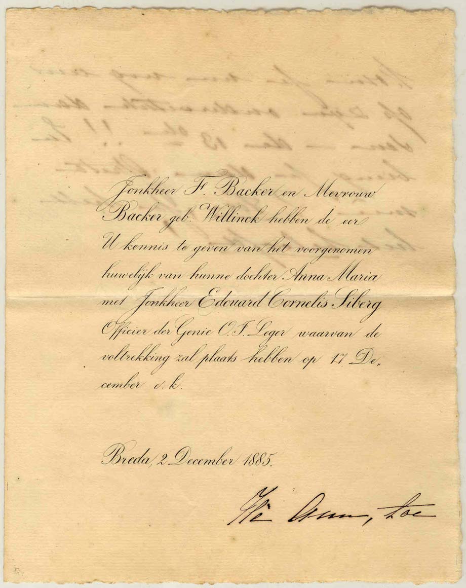 Uitnodiging voor huwelijk van Anna Maria Backer en J...