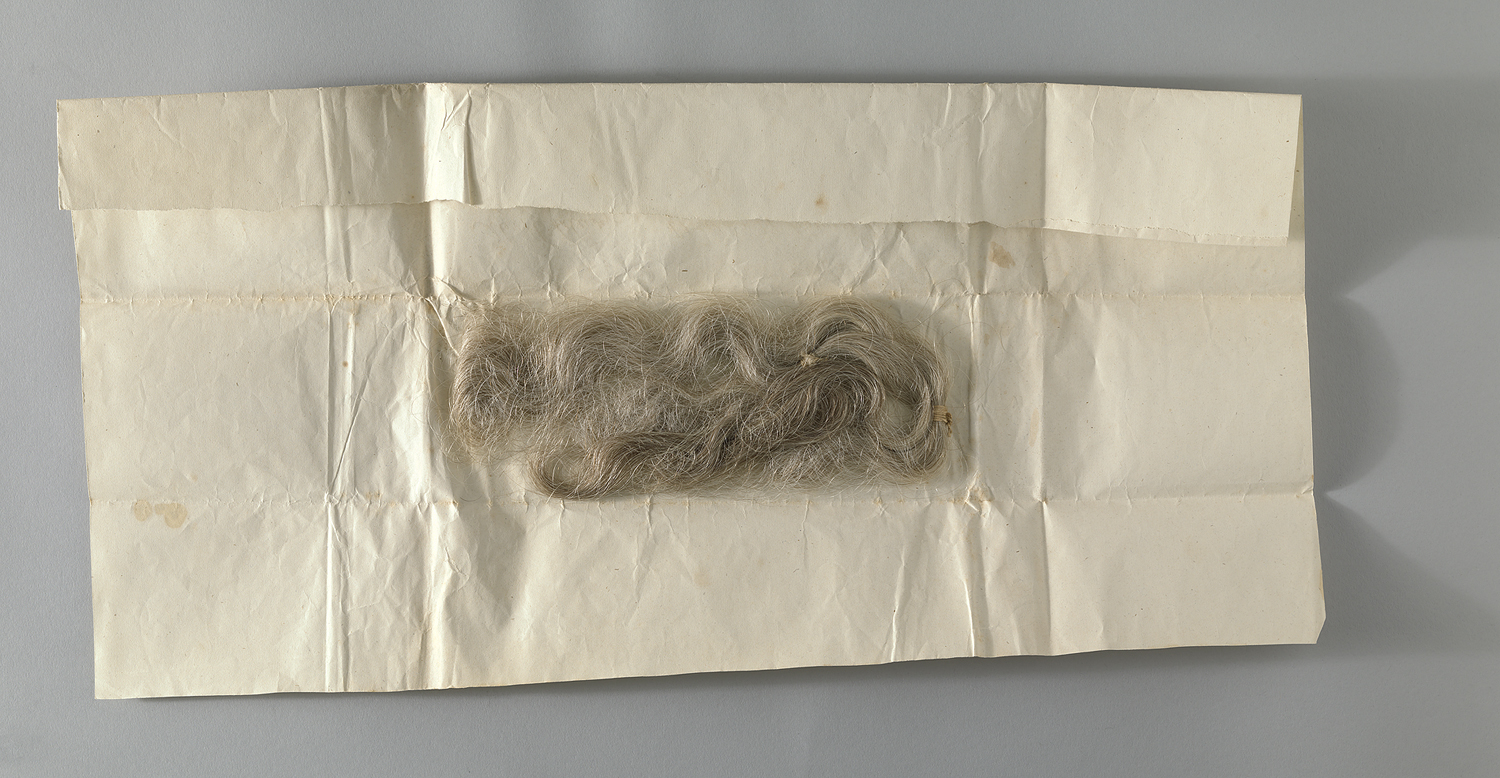 Pakketje met haarlok van waarschijnlijk Cornelia Hen...