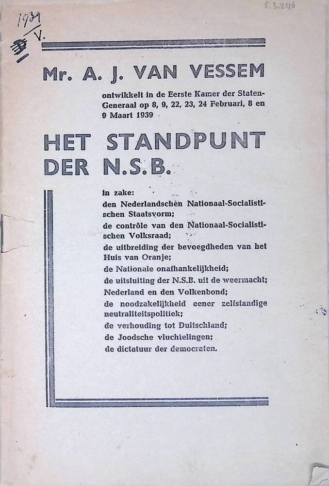 Mr. A.J. van Vessem, Het Standpunt der NSB (1939)