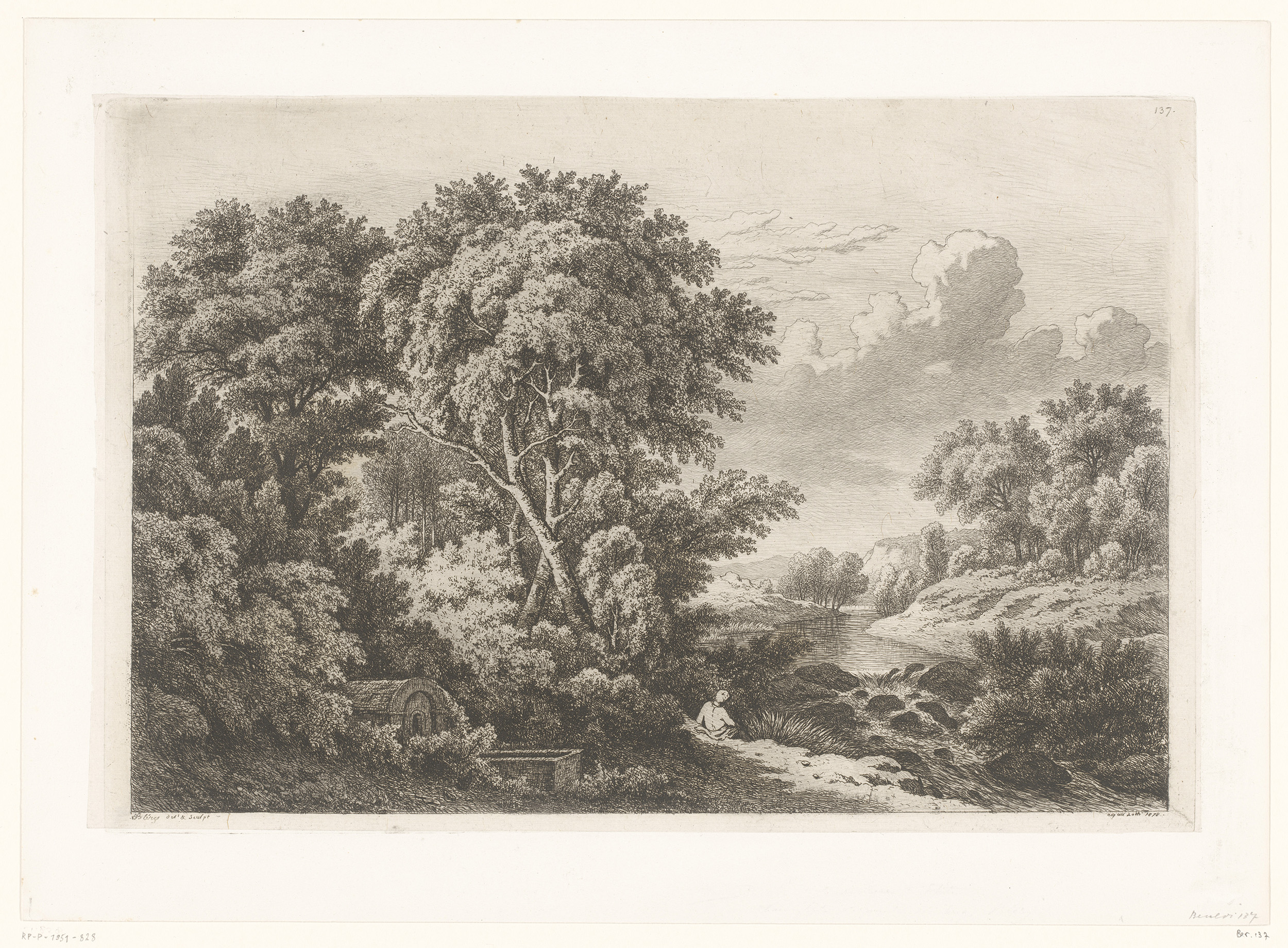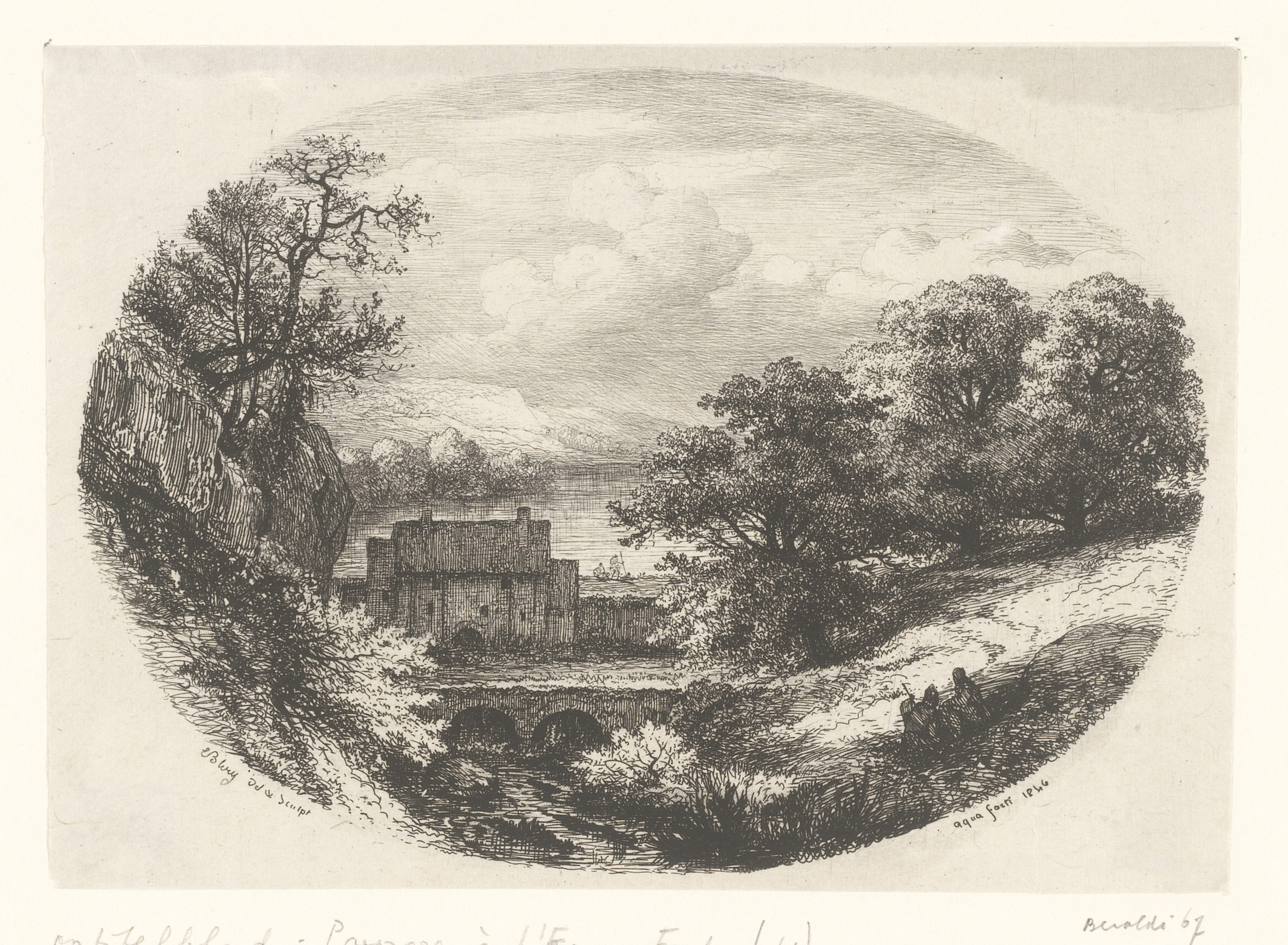 Titelprent met landschap, viaduct en twee rustende f...
