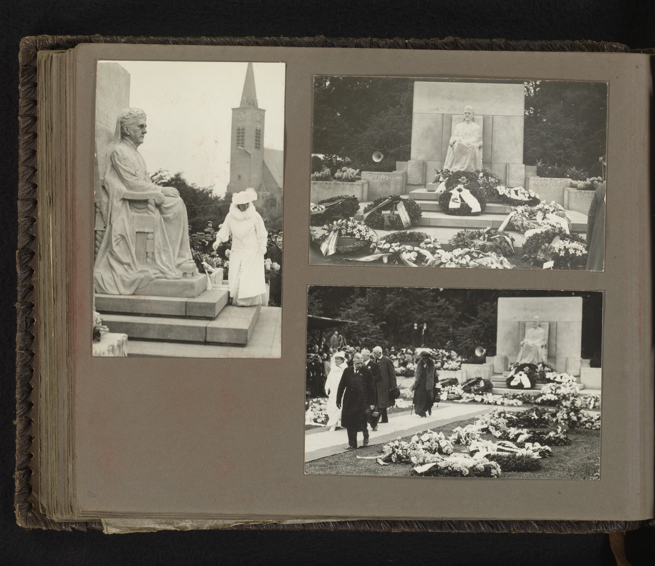 Drie foto's van de onthulling van het monument voor ...