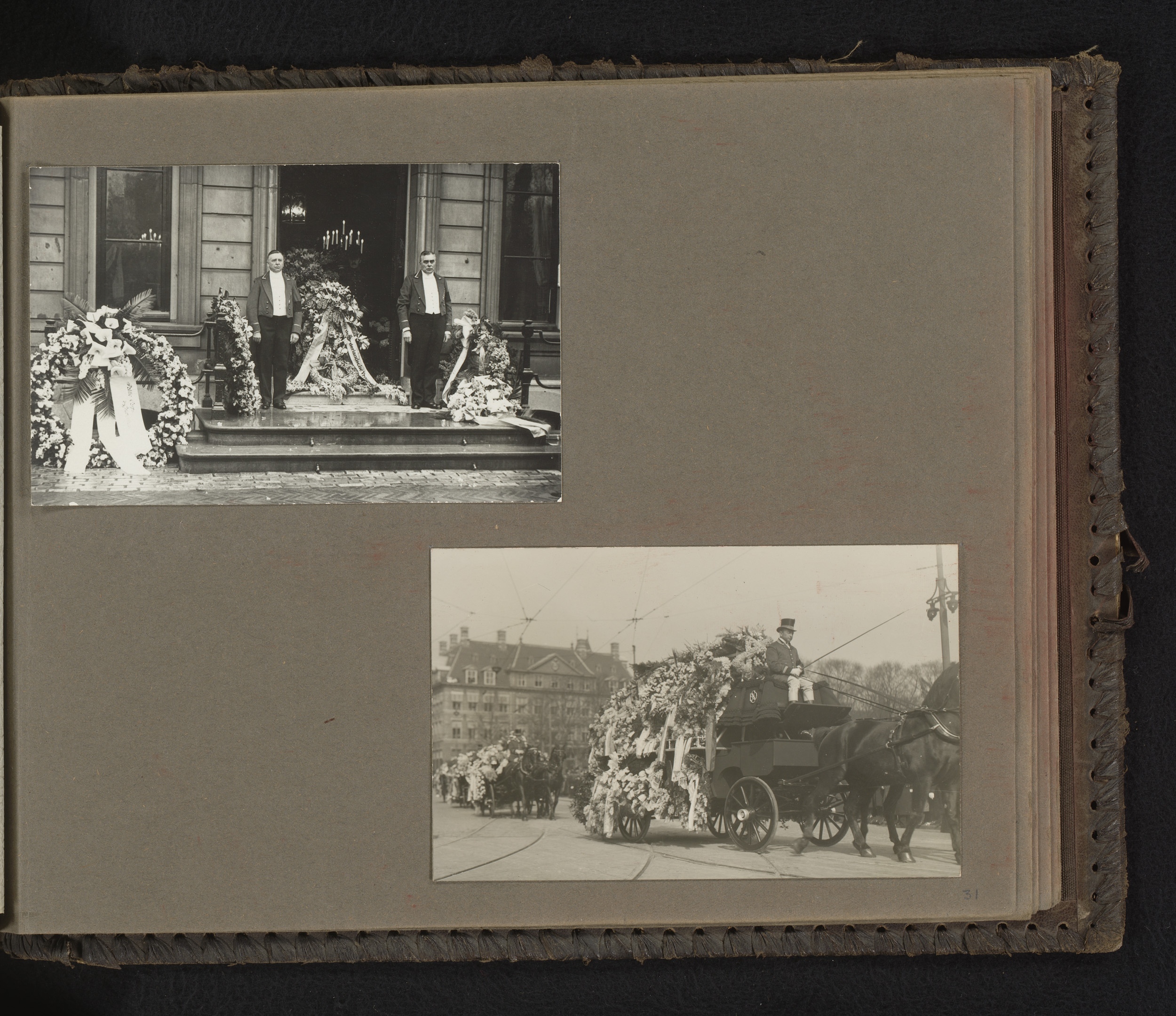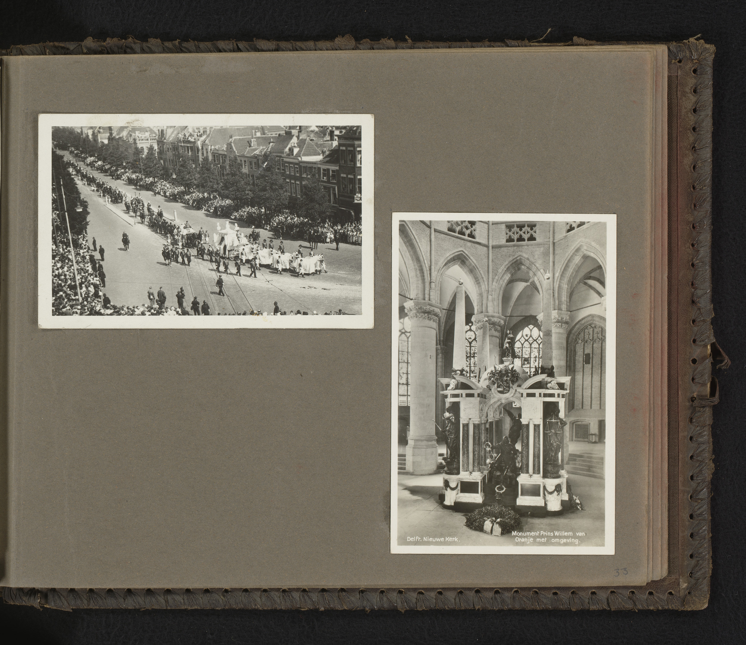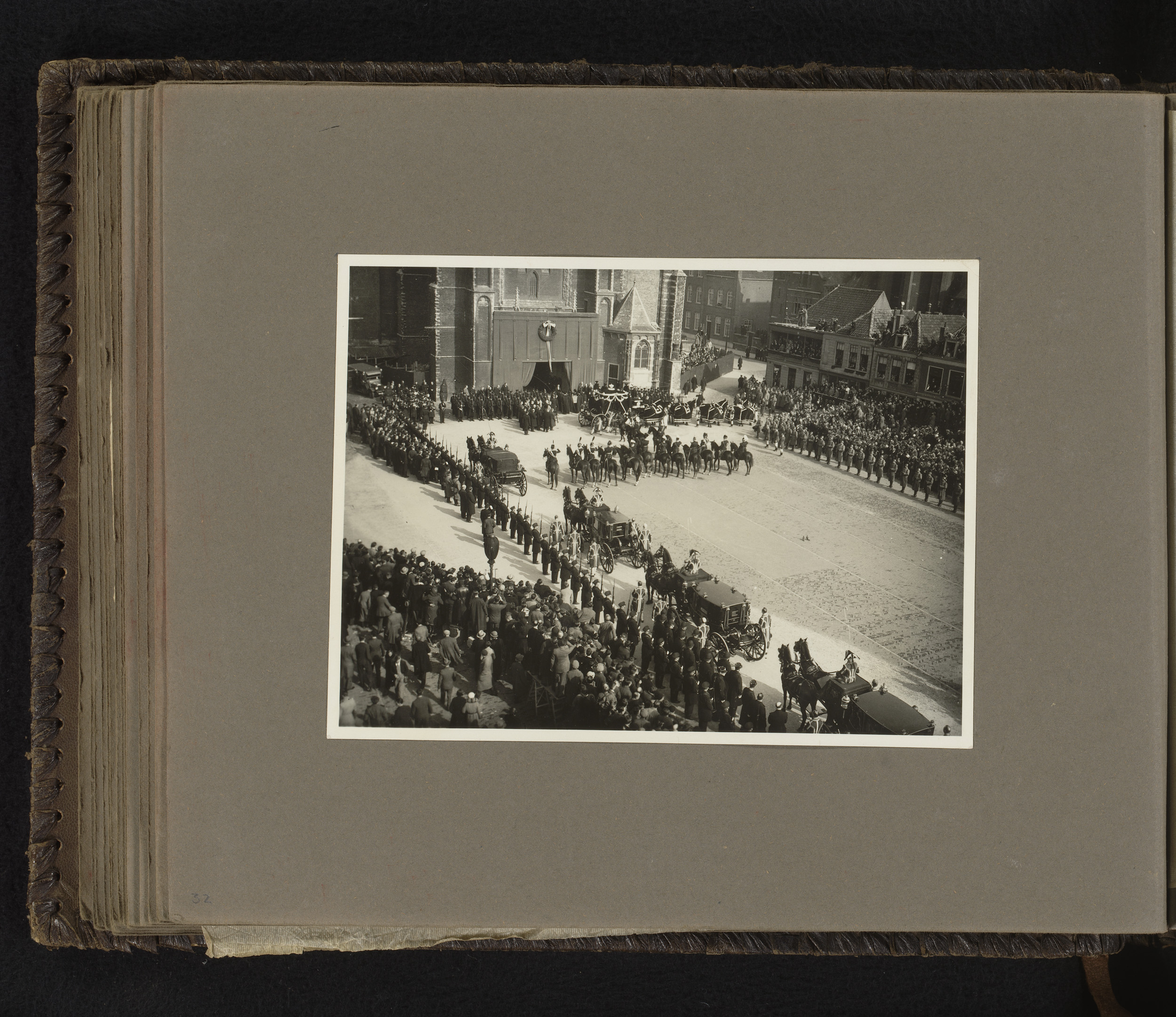 Twee foto's van de uitvaart van koningin-moeder Emma