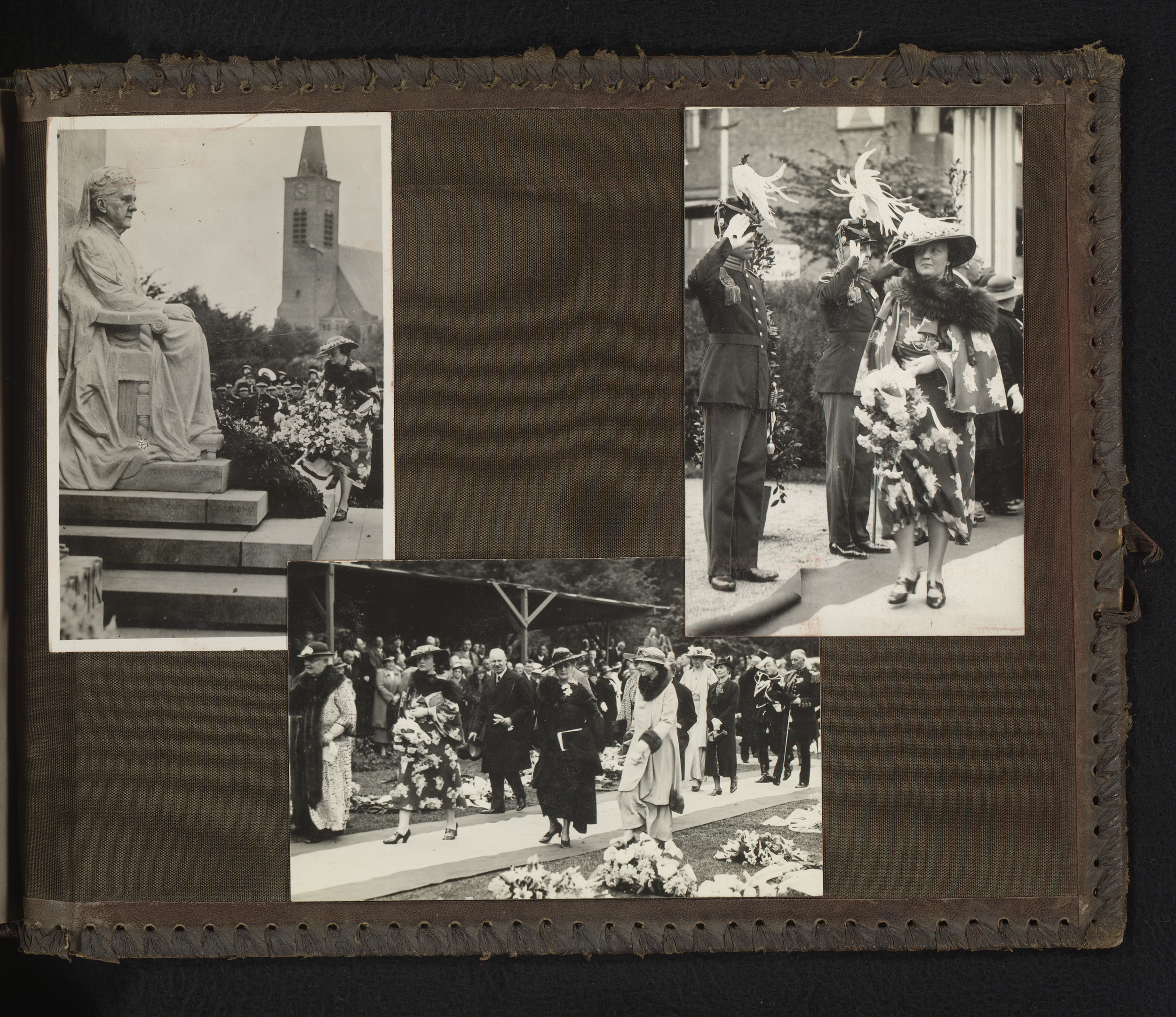 Drie foto's van prinses Juliana bij de onthulling va...