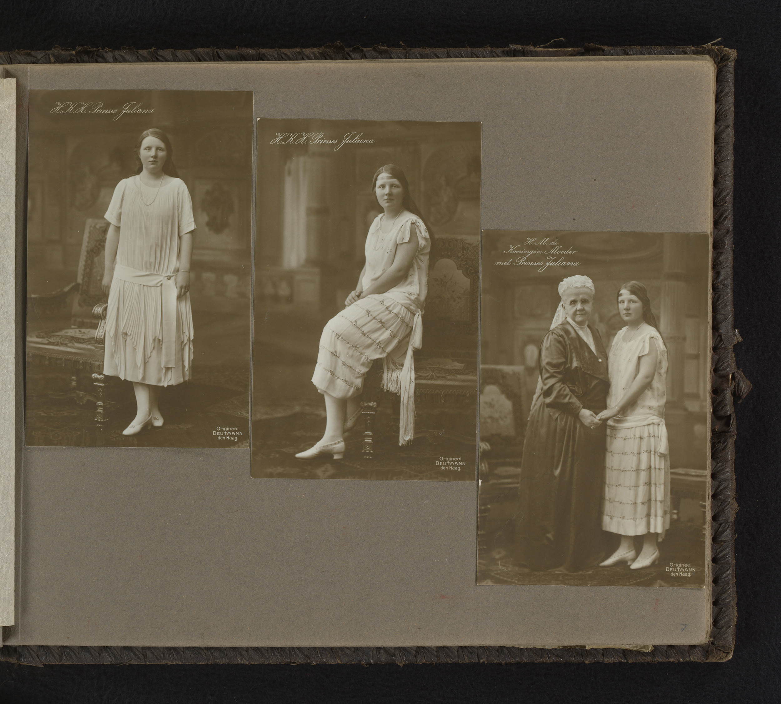 Drie portretten van prinses Juliana op zestienjarige...