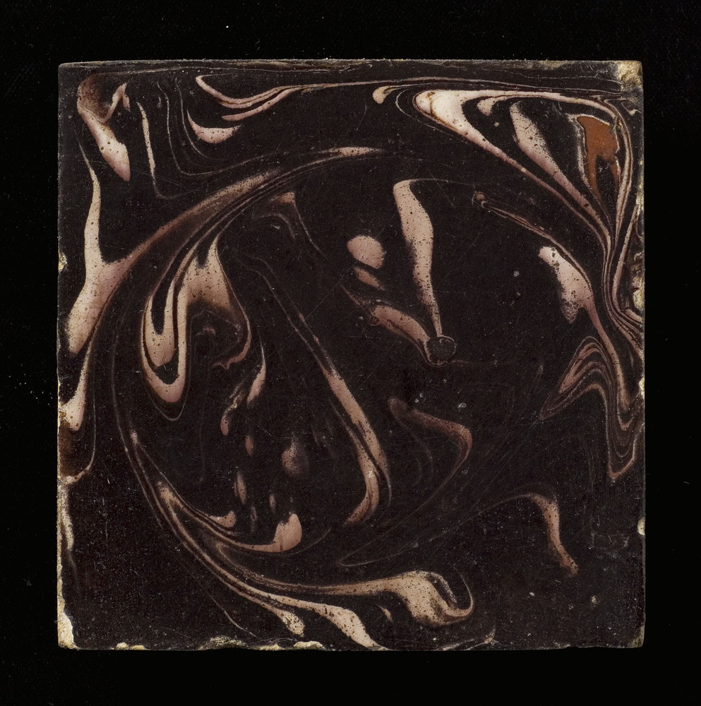 Tegelveld in tinglazuur, voorstellende gevlamde tege...
