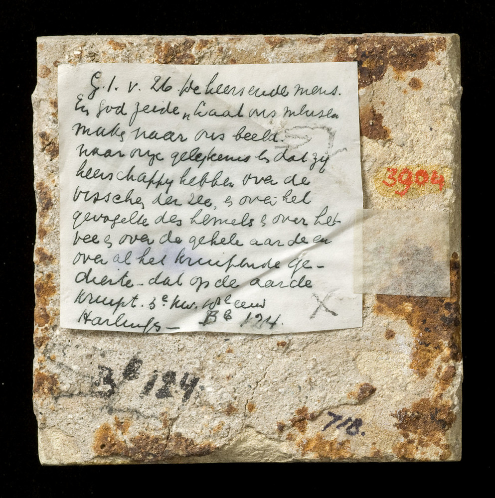 tegel van aardewerk met tinglazuur, voorstellende: o...