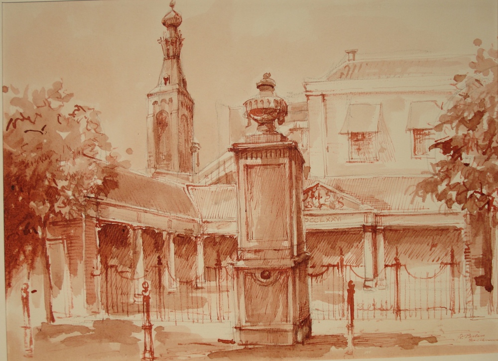 aquarel op papier van de Vismarkt te Zaltbommel circ...