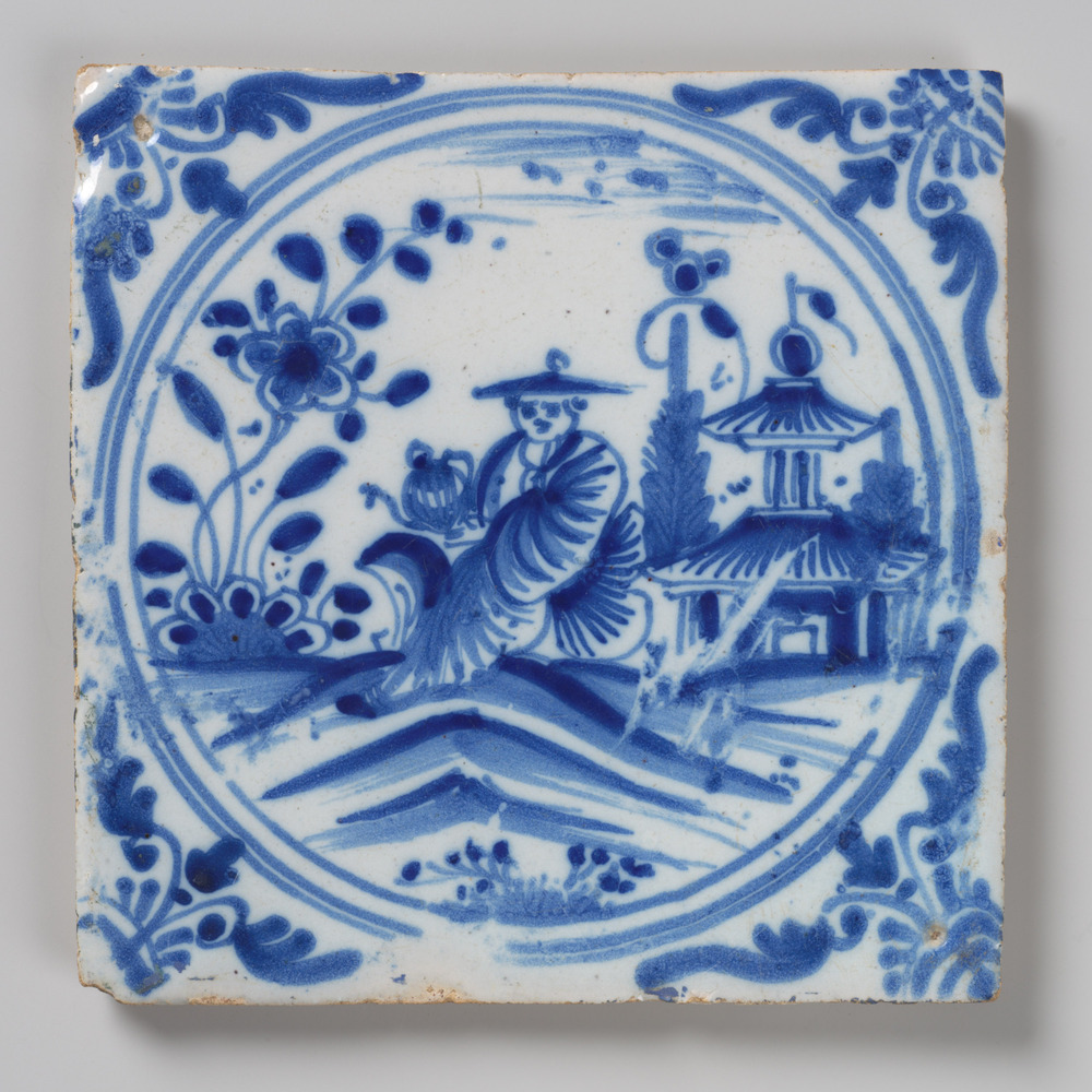 tegel van aardewerk met tinglazuur, voorstellende: n...