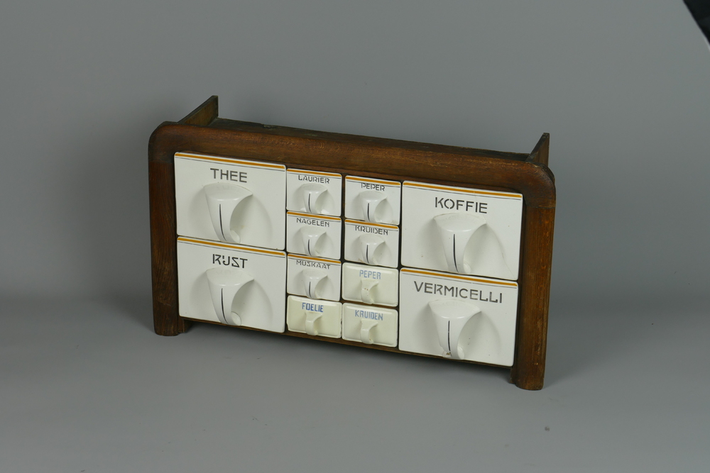 laden van aardewerk behorend bij een keukenrek, circ...