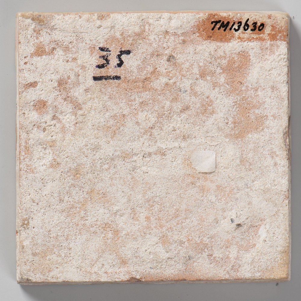 tegel van keramiek met tinglazuur, voorstellende: dr...