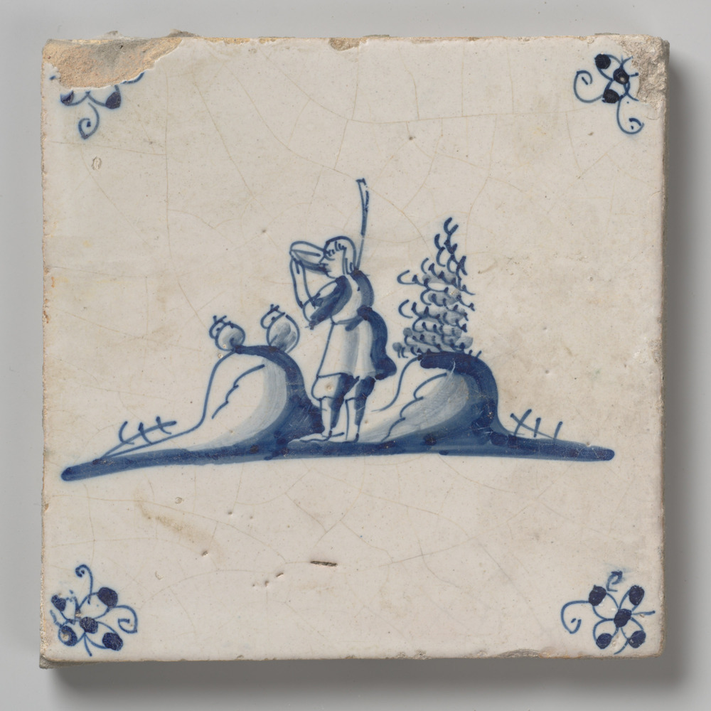 tegel van aardewerk met tinglazuur, voorstellende: h...