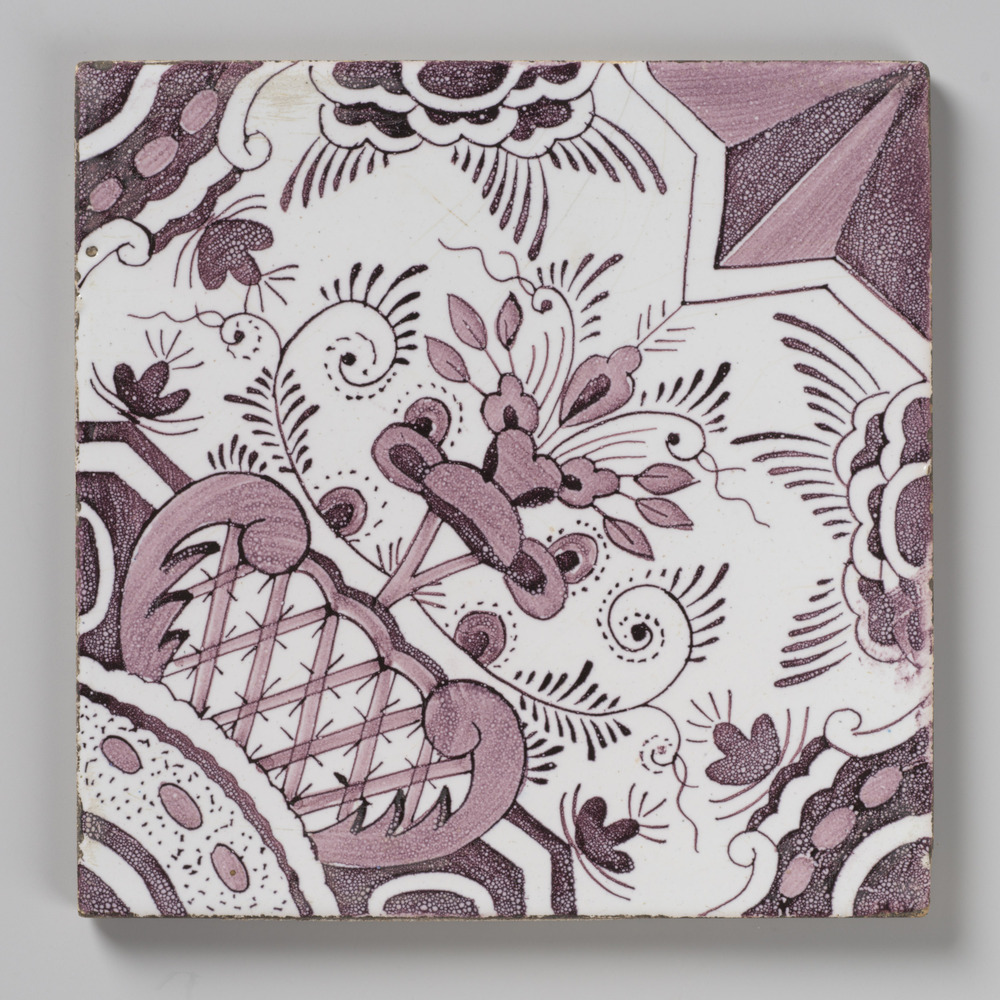 tegel van keramiek met tinglazuur, voorstellende: pl...