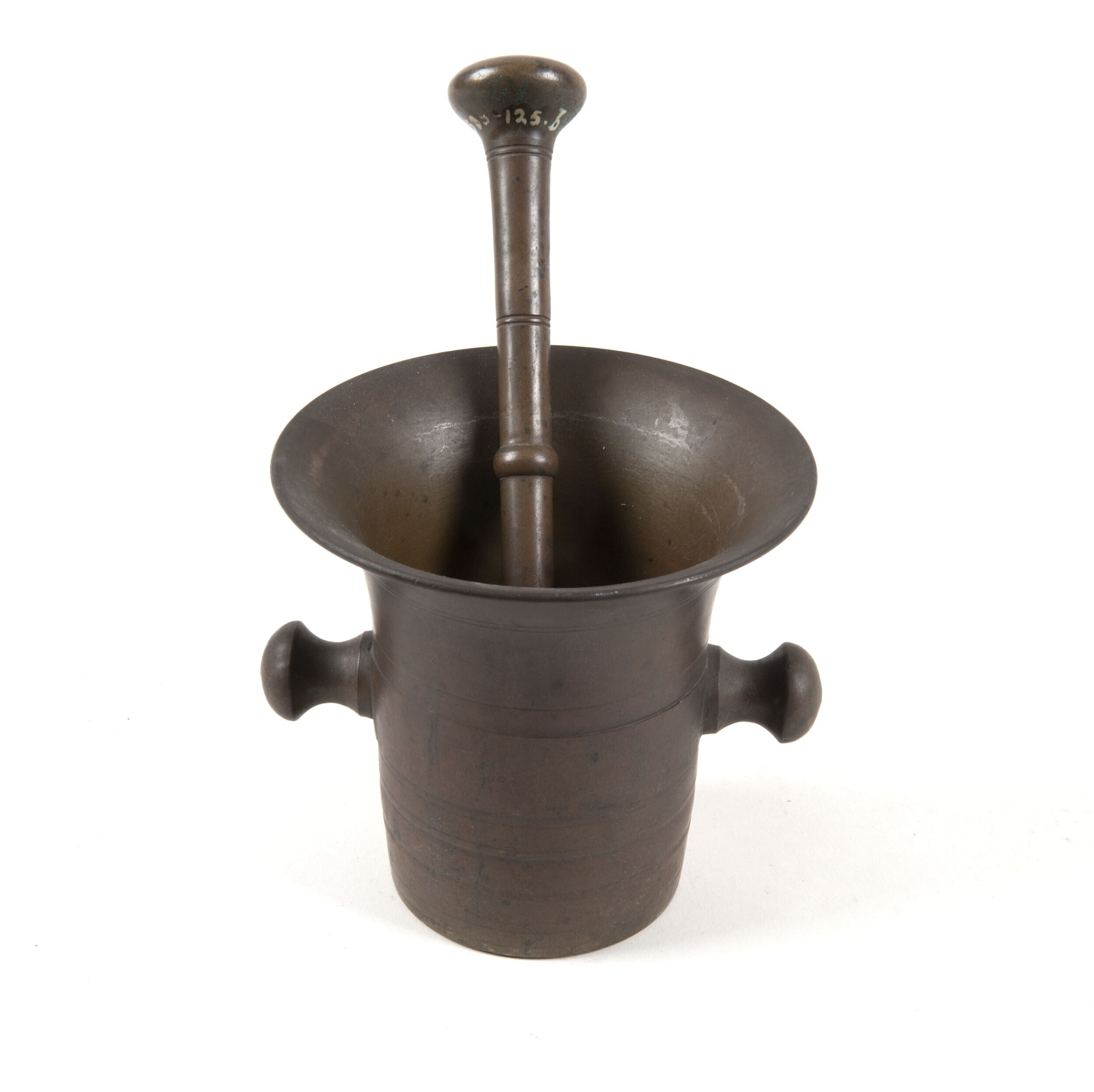 Vijzel van steen voor het fijnwrijven van kruiden en...