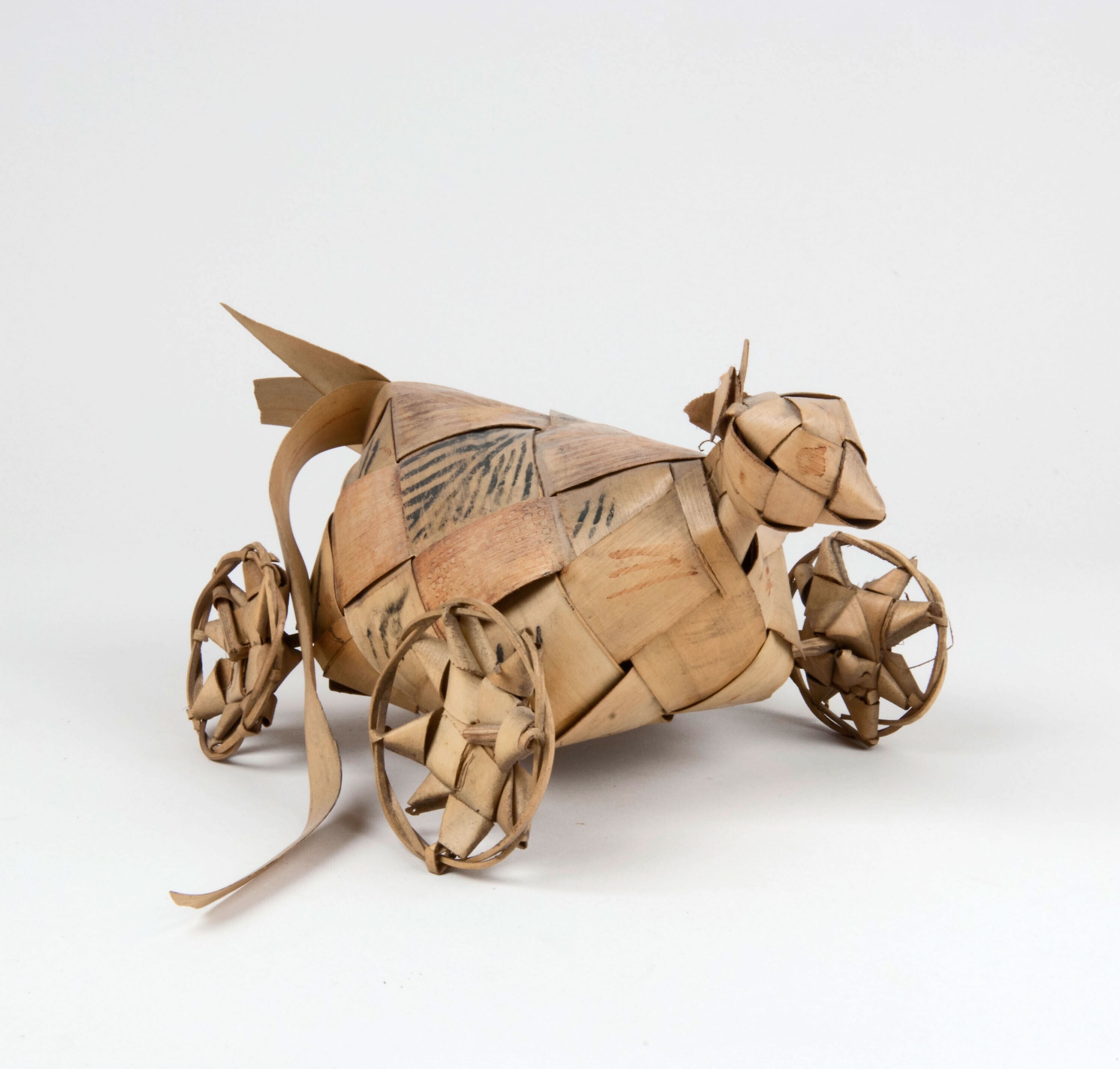 Speelgoed van gevlochten lontarblad voorstellende ee...