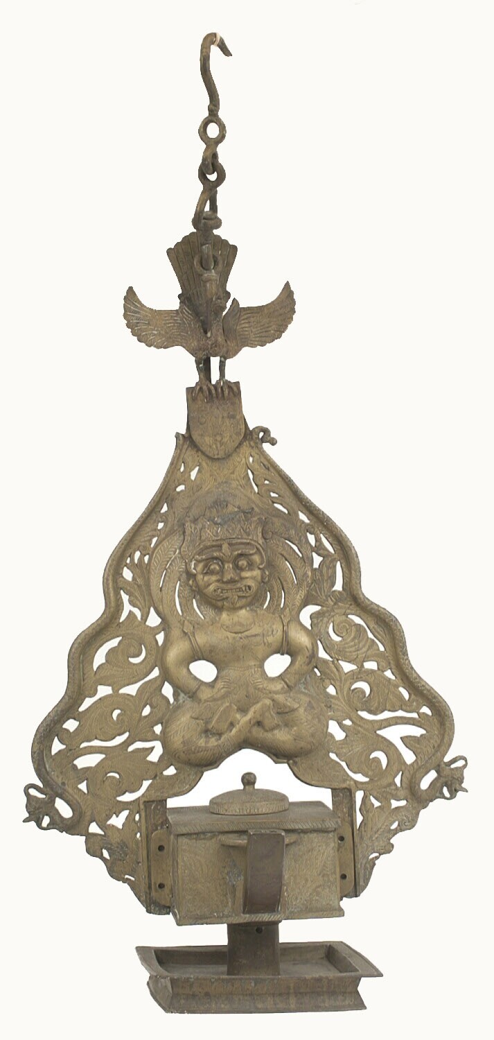 Geelkoperen wajanglamp in de vorm van een gunungan m...