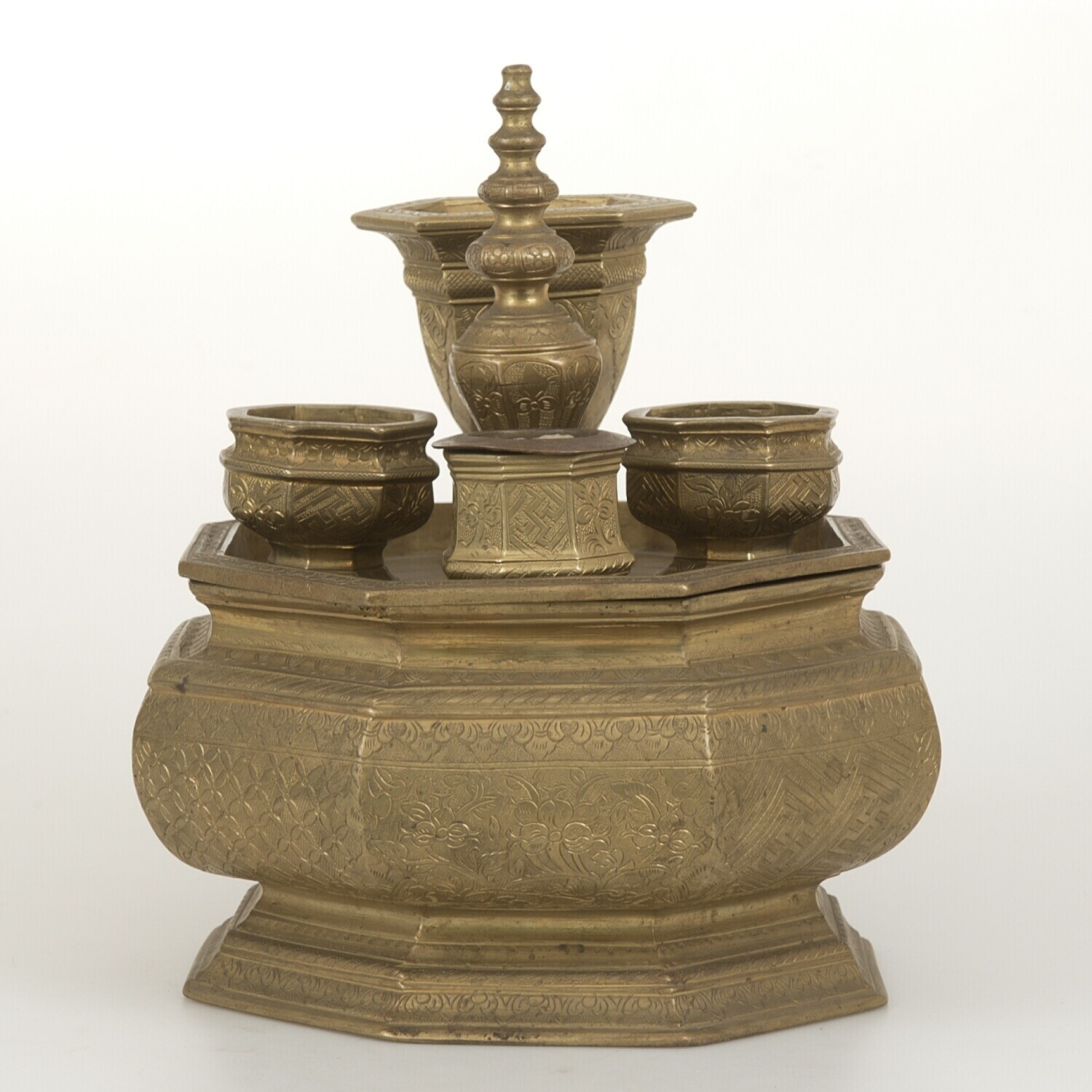 Kwispedoor met geciseleerd tumpal- en swastikamotief