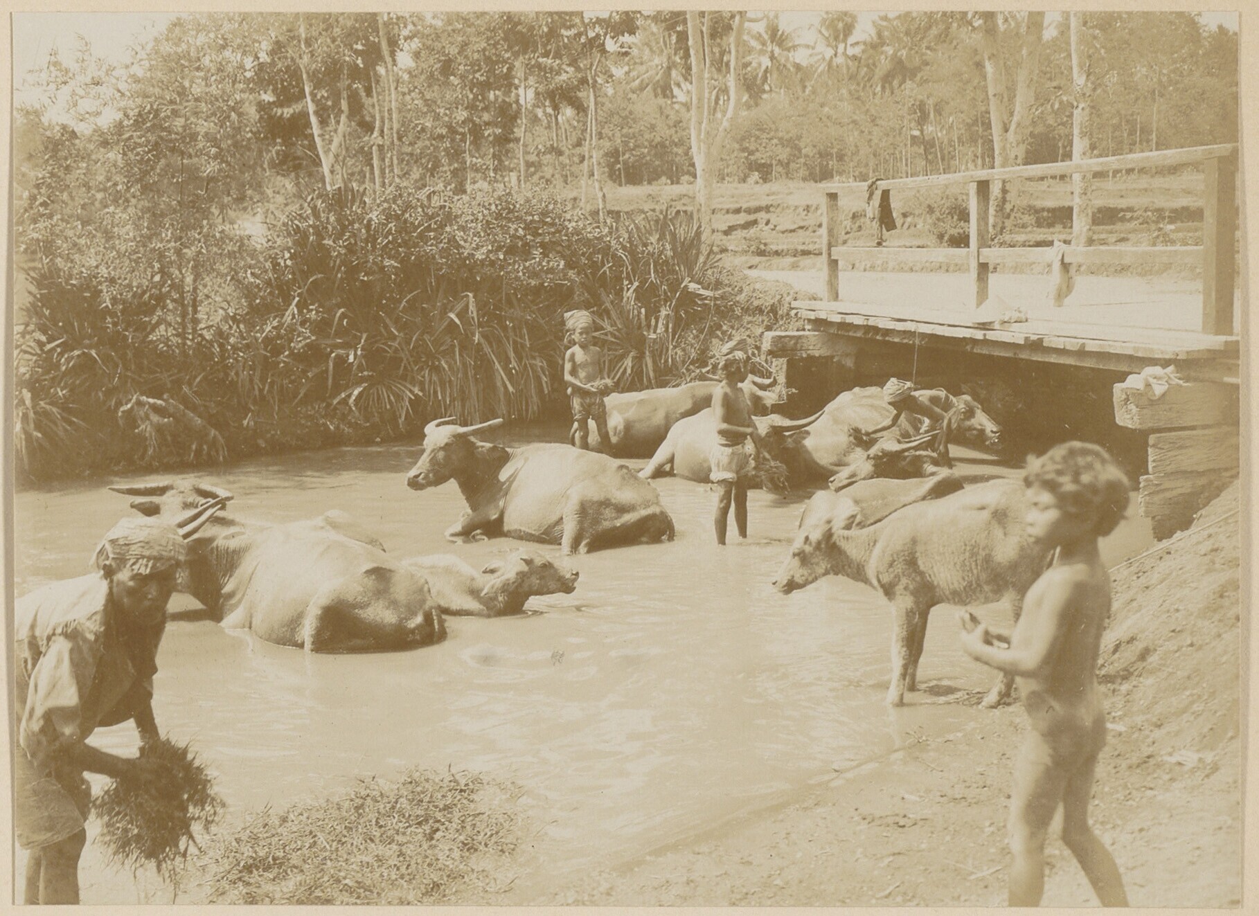 Titelblad met foto van Javaanse arbeiders met rund a...