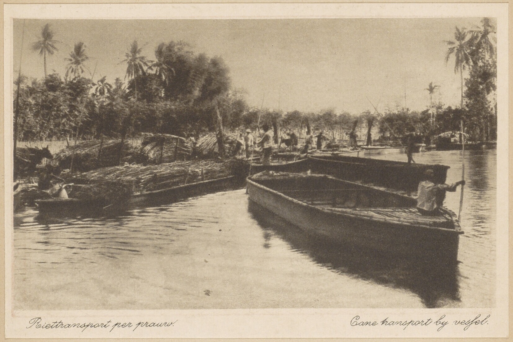 Javaanse arbeiders aan het werk op suikerplantage op...