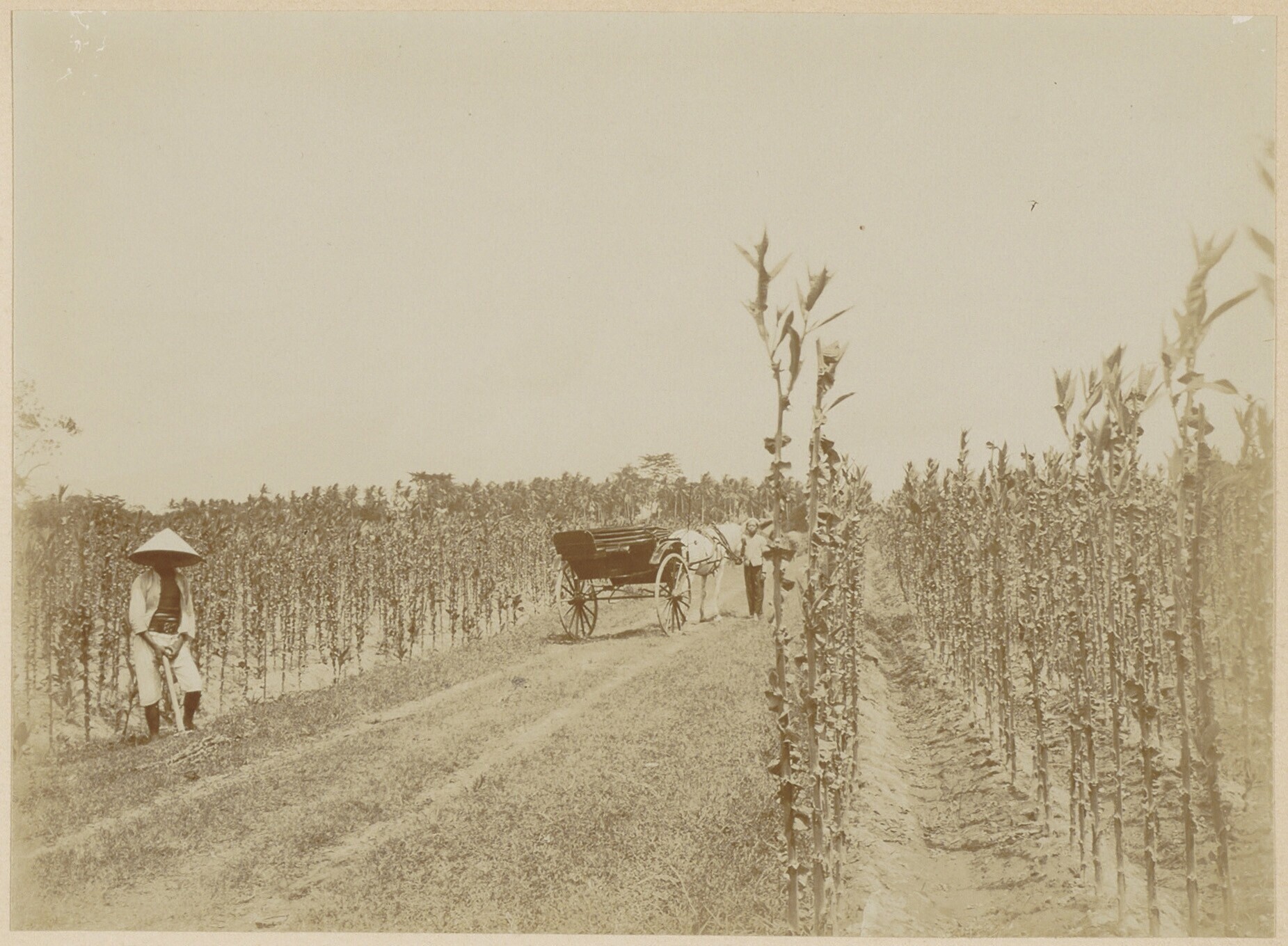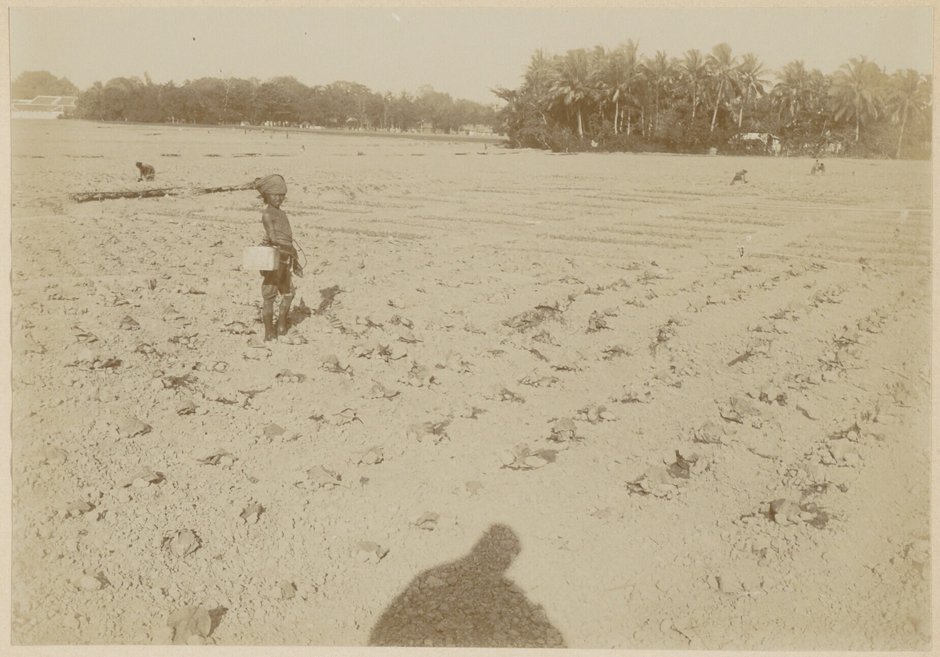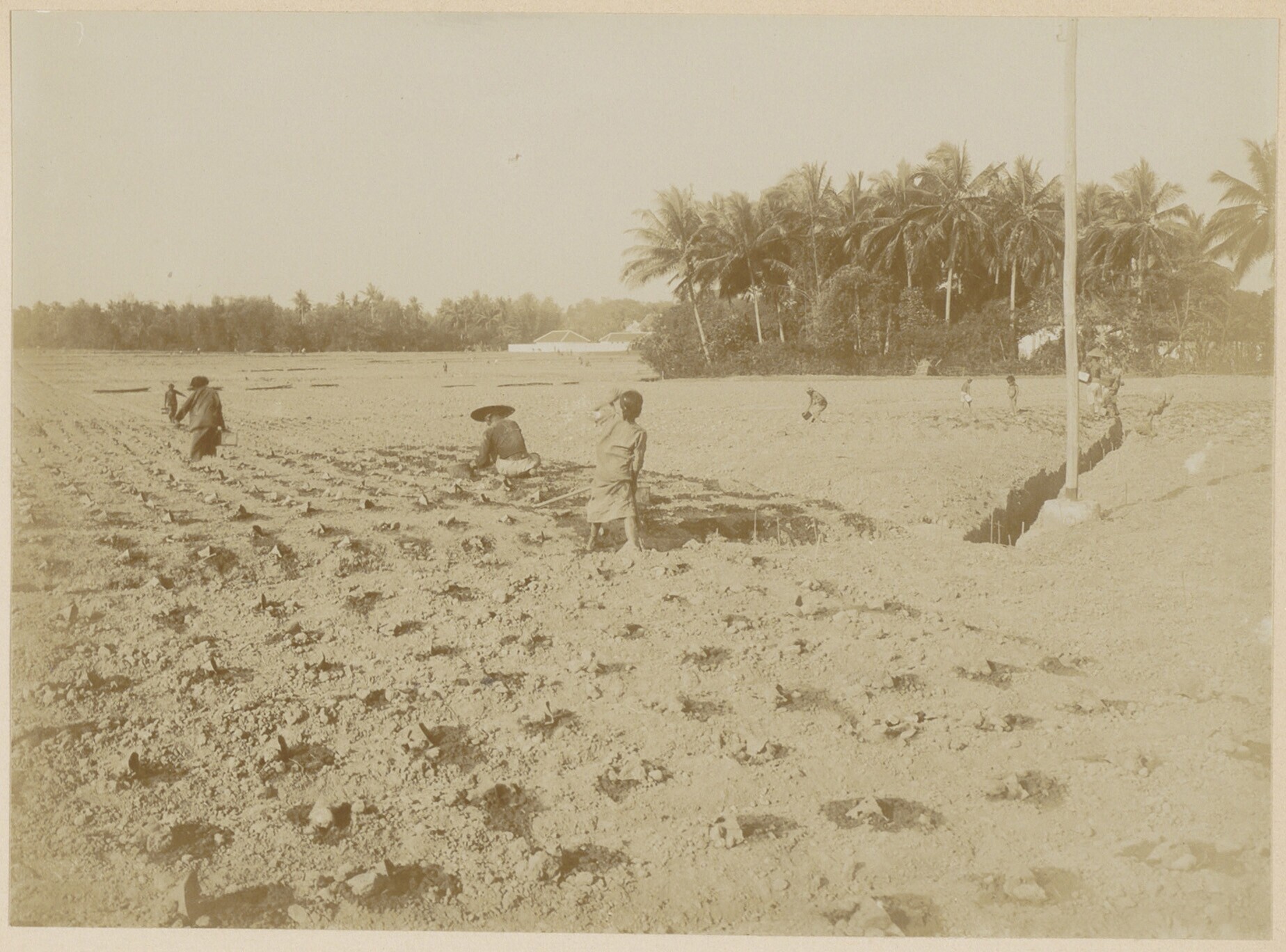 Graafwerkzaamheden door Javaanse arbeiders op een pl...