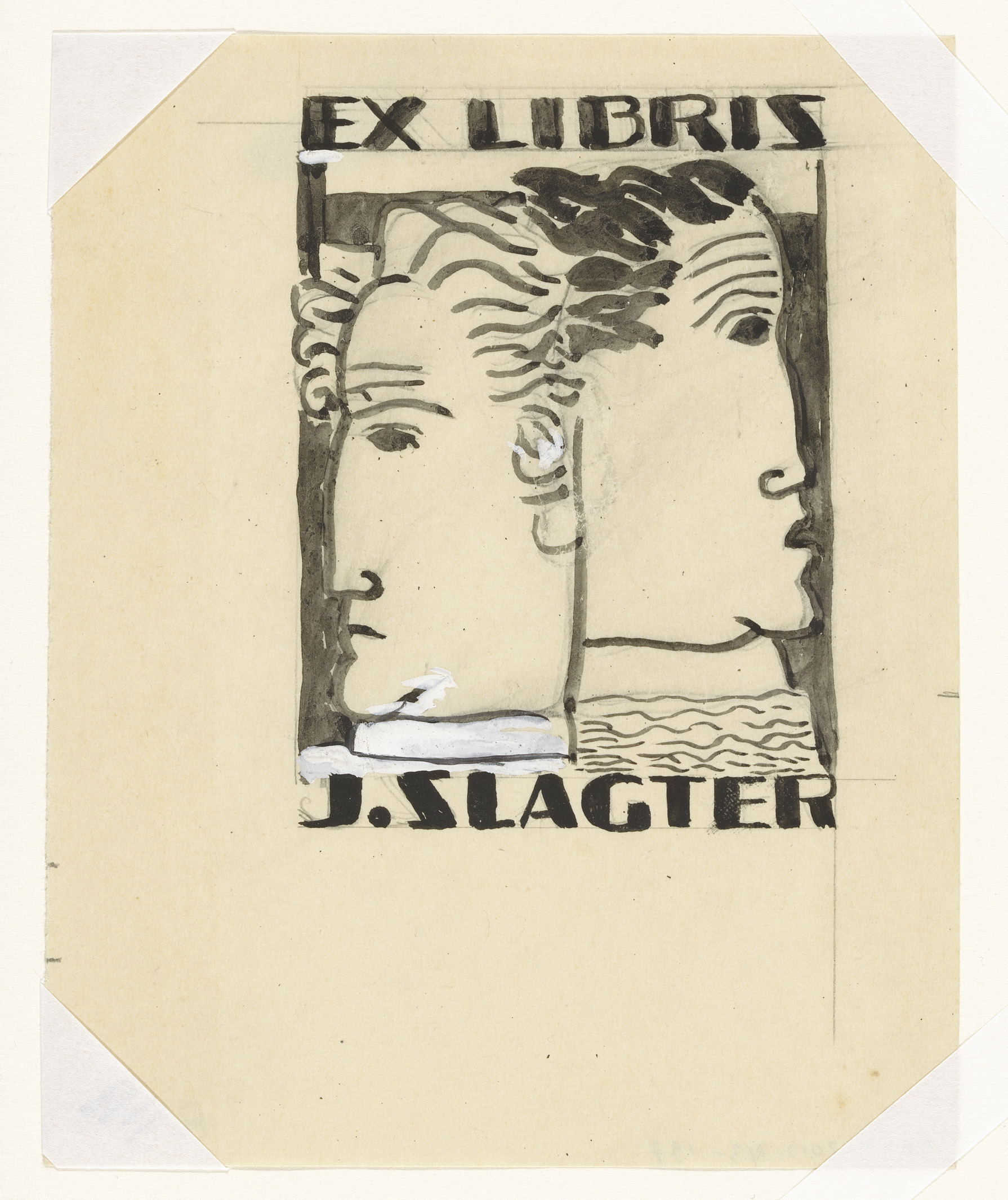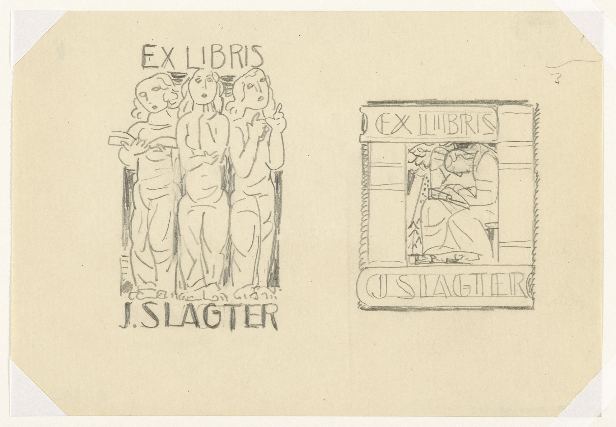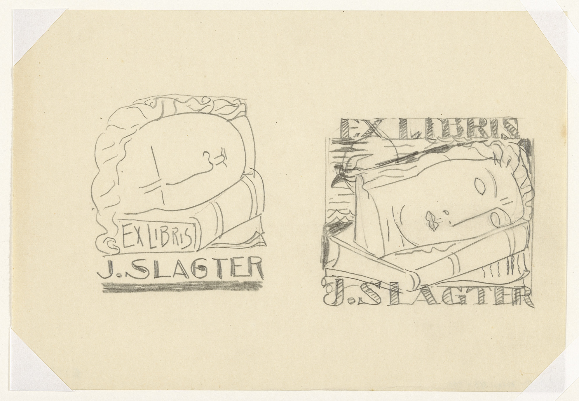 Ex libris voor J. Slagter (ontwerp, twee keer)