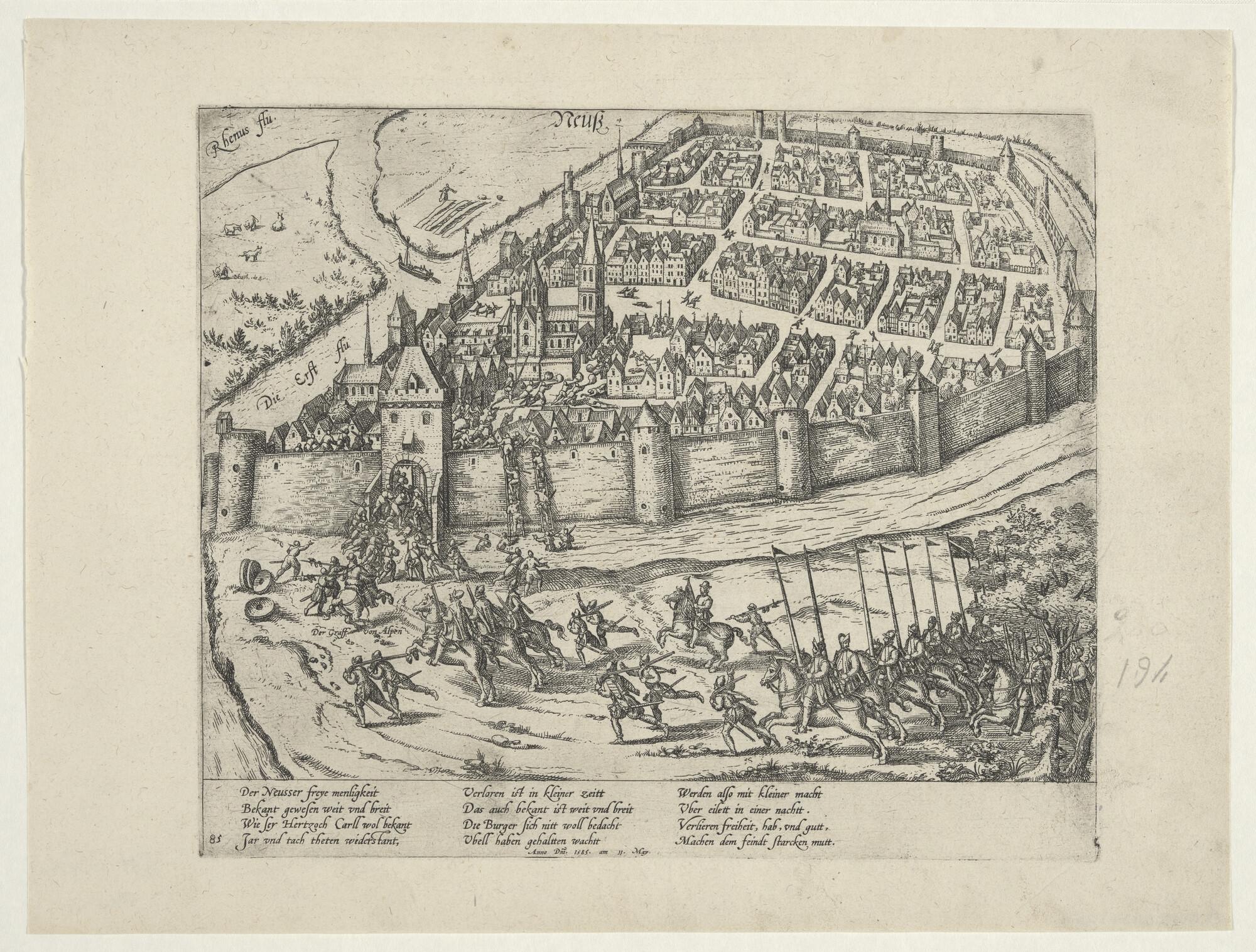 Neuss gewonnen door de graaf van Alpen, 11 mei 1585