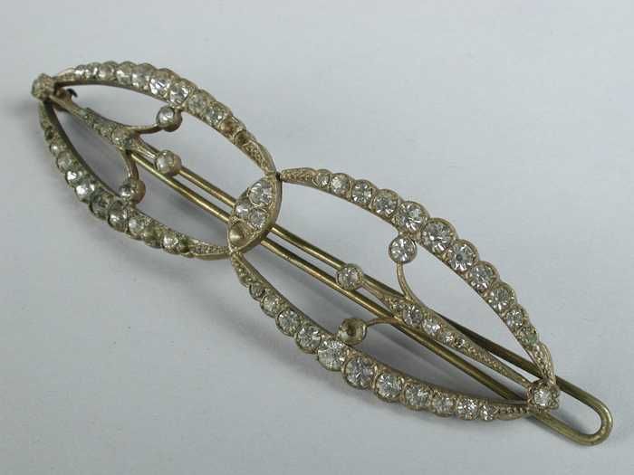 Haarschuif, twee ovale metalen ringen ingelegd met s...