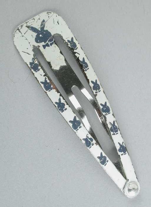 Haarschuif van blank metaal, wit met Playboy bunny s...