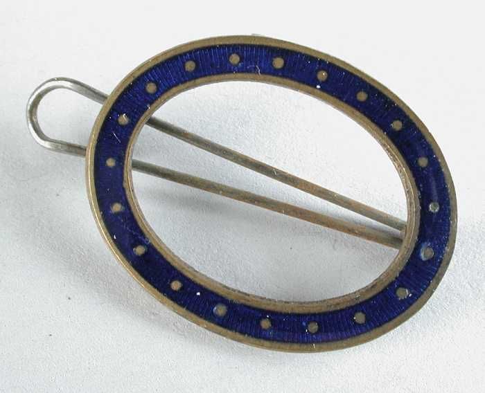 Haarschuif, metalen ring met donkerblauw emaille en ...